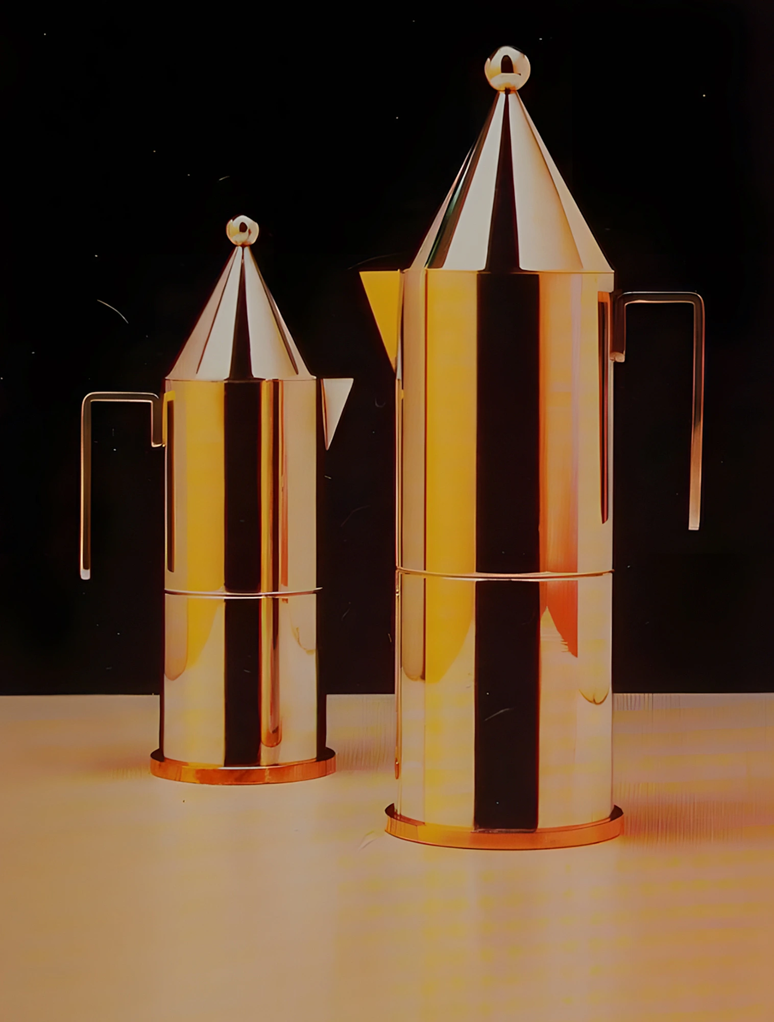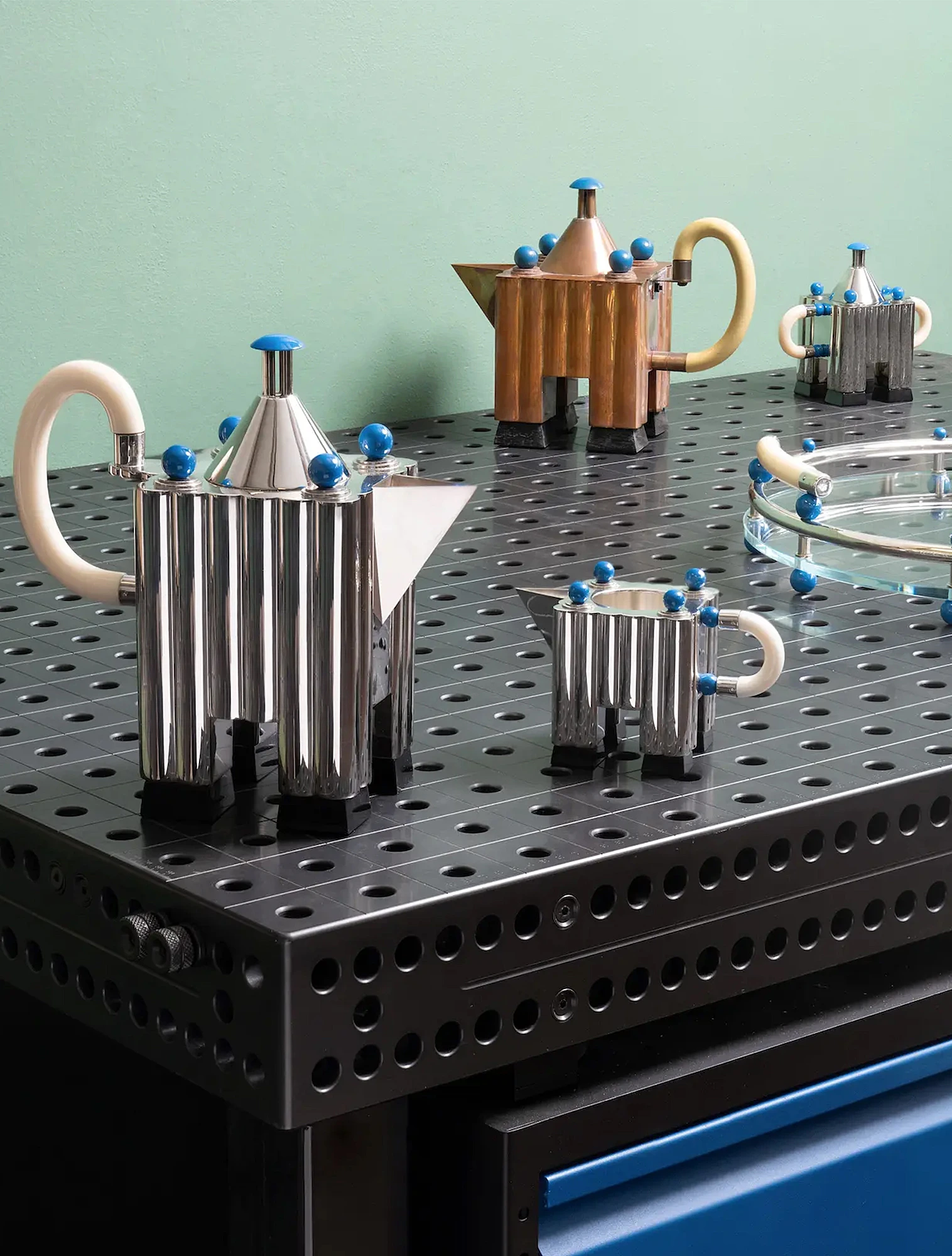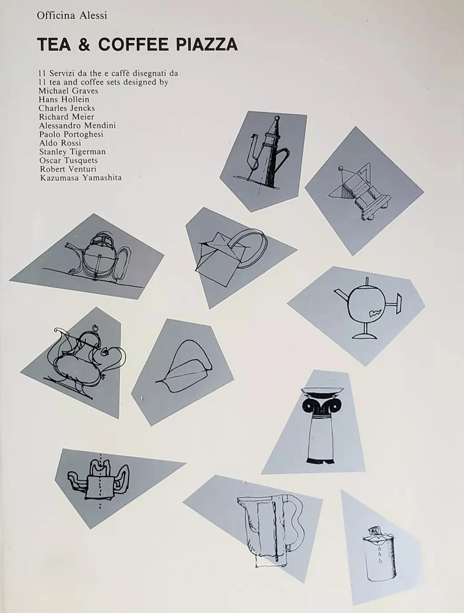 Они организовали исследовательский проект Tea & Coffee Piazza (Чайная и кофейная площадь). В рамках этого проекта 11 известных архитекторов, включая Майкла Грейвса, Альдо Росси и Роберта Вентури, искали новый дизайнерский язык для предметов быта. Они буквально создавали «микроархитектуру» стола, превращая поднос в площадь, а расположенные на нём предметы, вроде чайника или сахарницы — в здания.