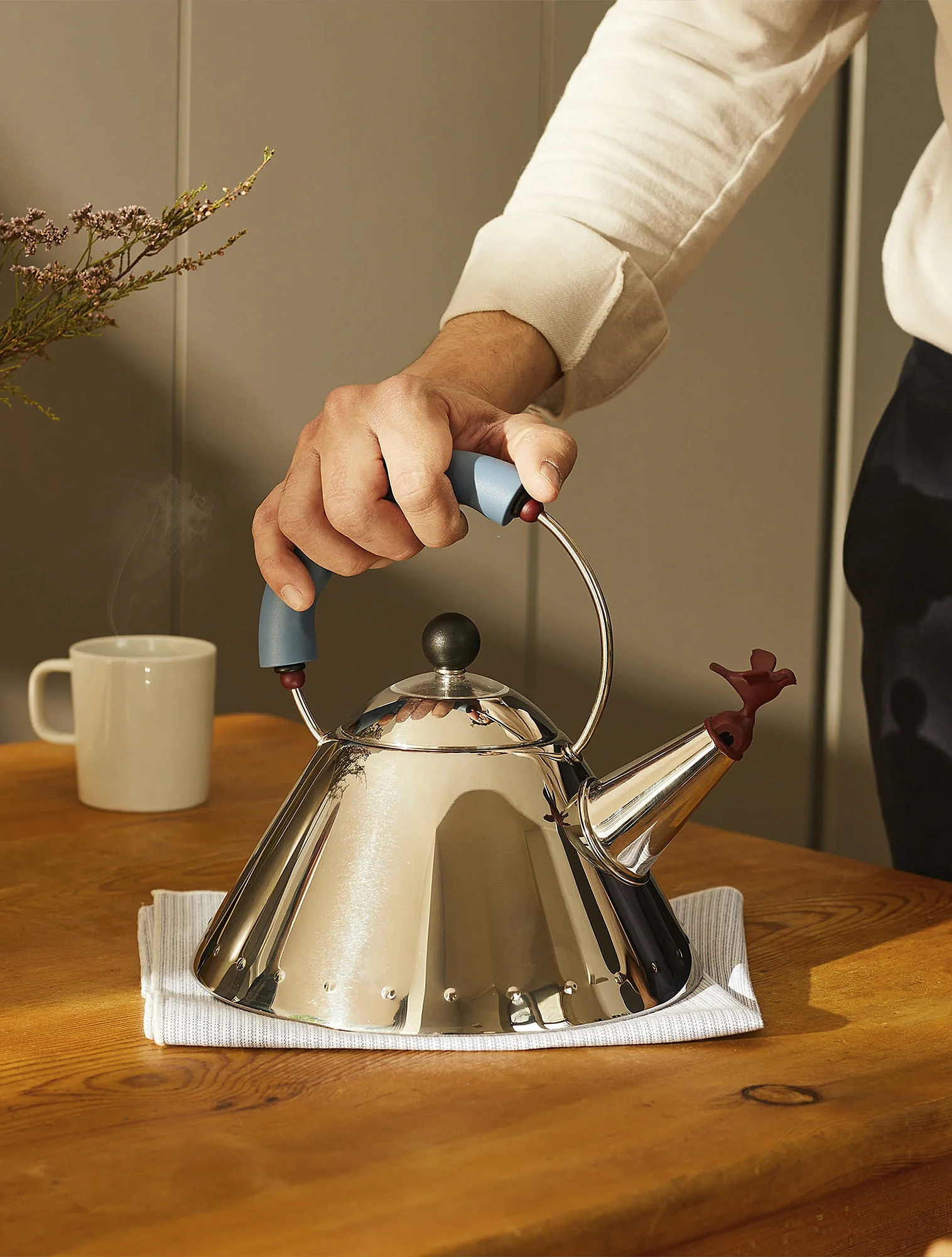 Майкл Грейвс разработал чайник «9093» с птичкой на носике, которая посвистывает, когда закипает вода. В производство чайник был запущен в 1985 году — и до сих пор это один из самых узнаваемых продуктов Alessi.