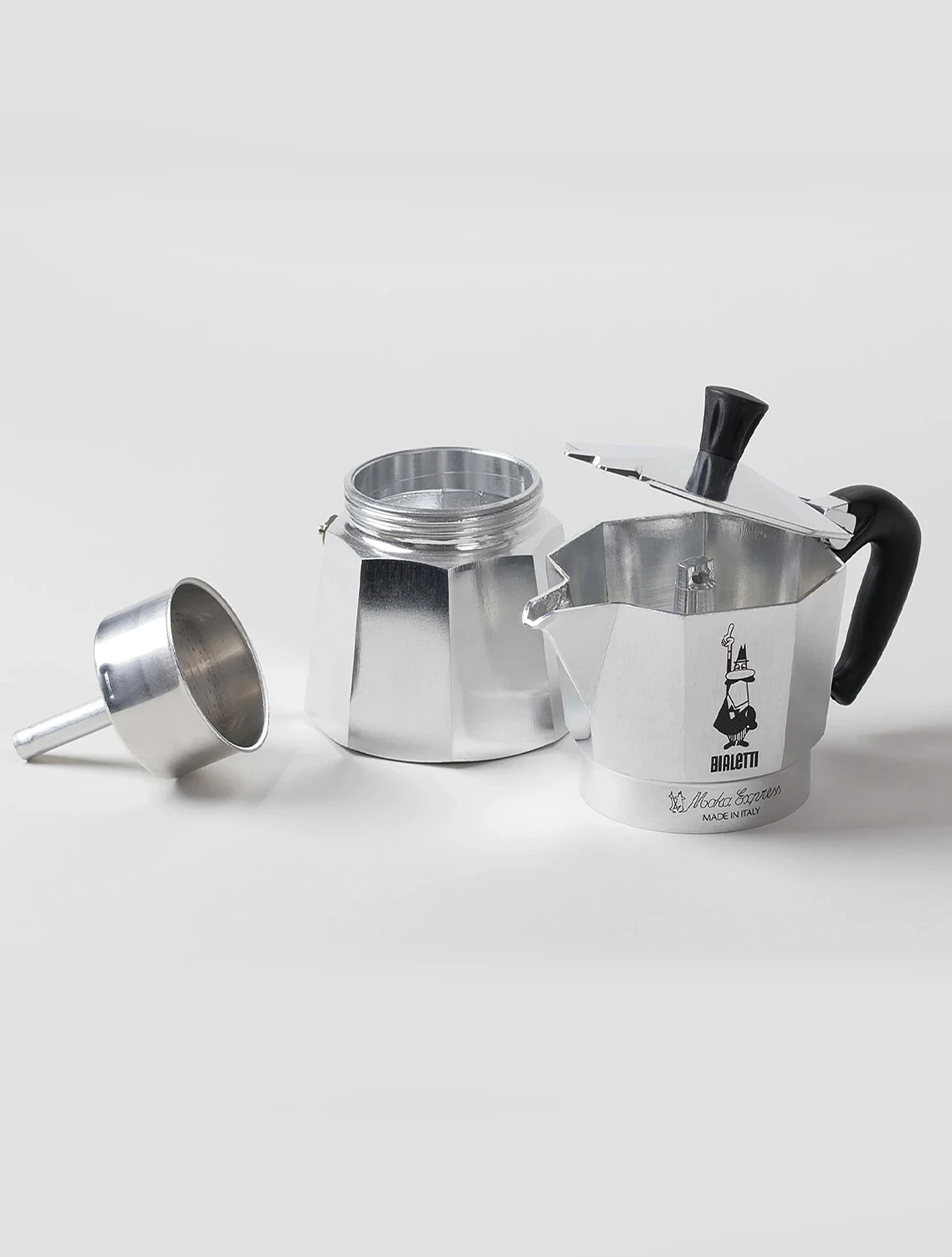 У Альфонсо Биалетти был немалый опыт: он десять лет проработал во французской алюминиевой индустрии. Алюминий — отличный проводник тепла, и Биалетти использовал его сплав для своей кофеварки. Он создал ситечко с трубкой и разместил её в основании прибора.