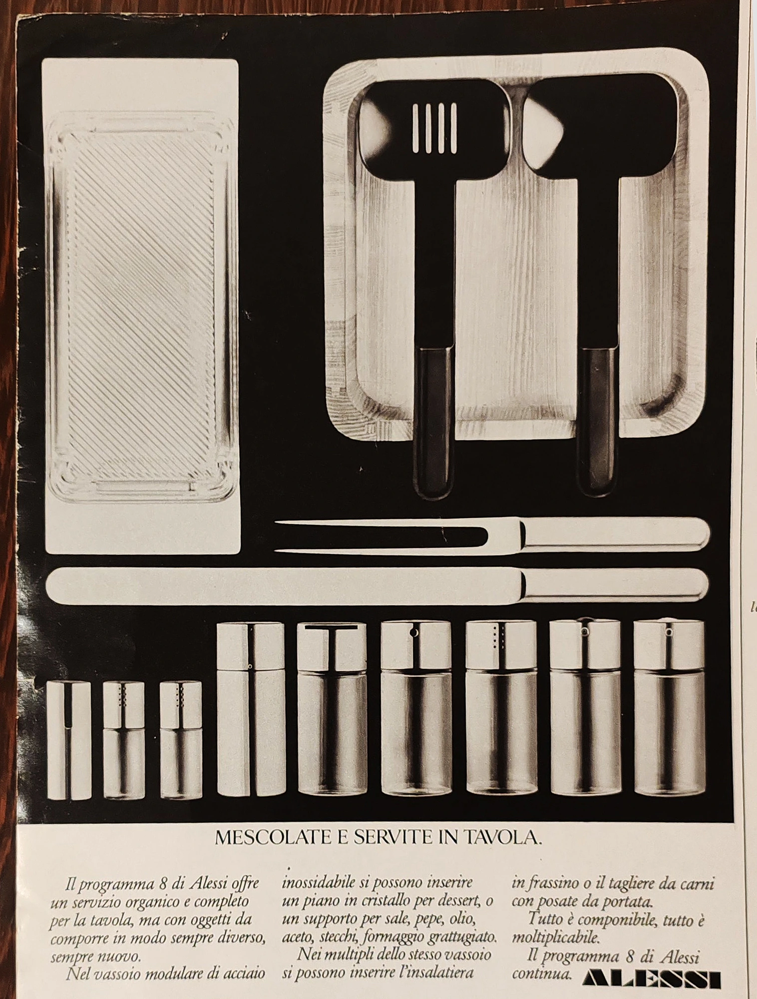 Стальной сервиз модульного типа Programma 8 стал революцией на рынке посуды. Его элементы вкладывались один в другой, как папки. Создатели хотели максимально сэкономить место, поэтому отказались от привычных округлых форм.