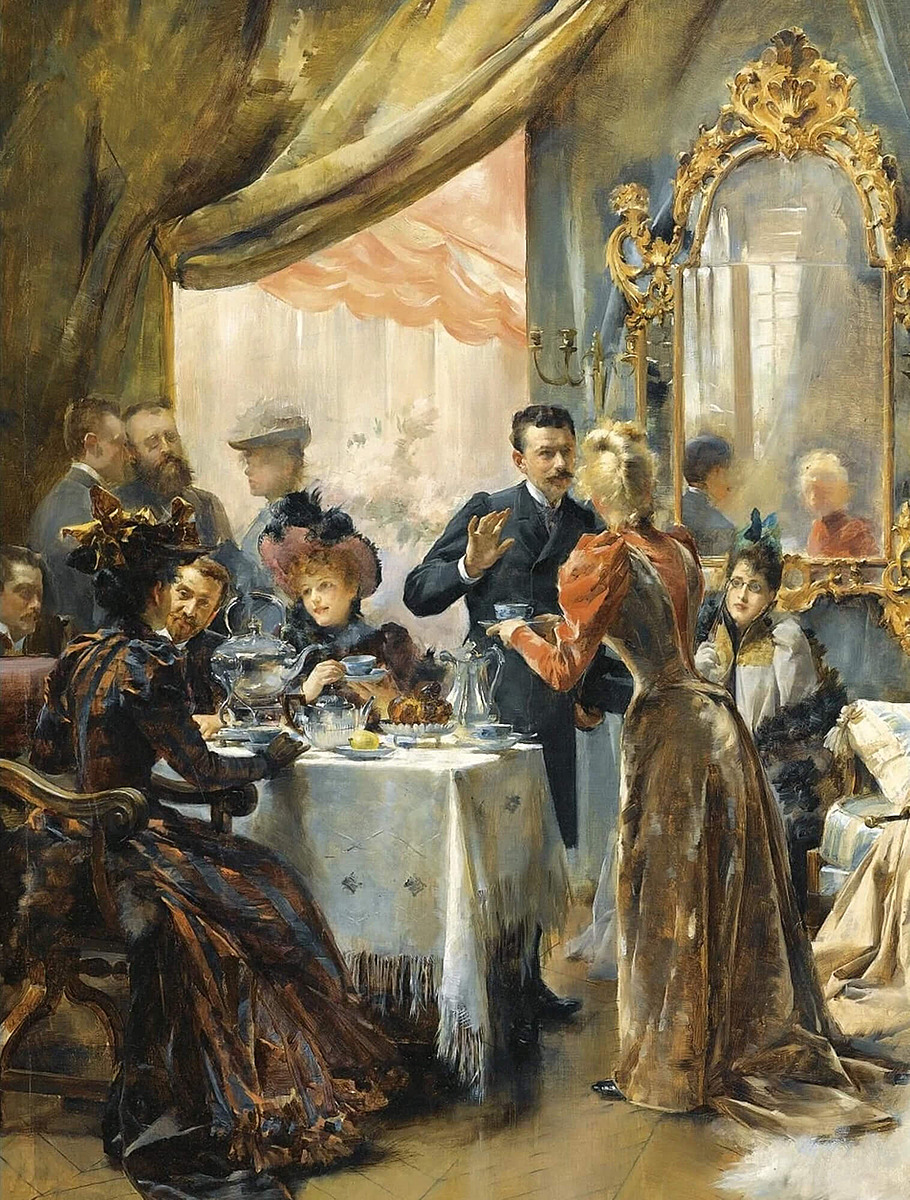 Чай по чашкам традиционно разливает хозяйка — это проявление заботы и знак внимания. Исторически в Европе именно хозяйка считалась «хранительницей чайного стола»: она наливала чай сама, подчёркивая уважение к каждому гостю. Это был не только бытовой жест, но и символ гостеприимства.