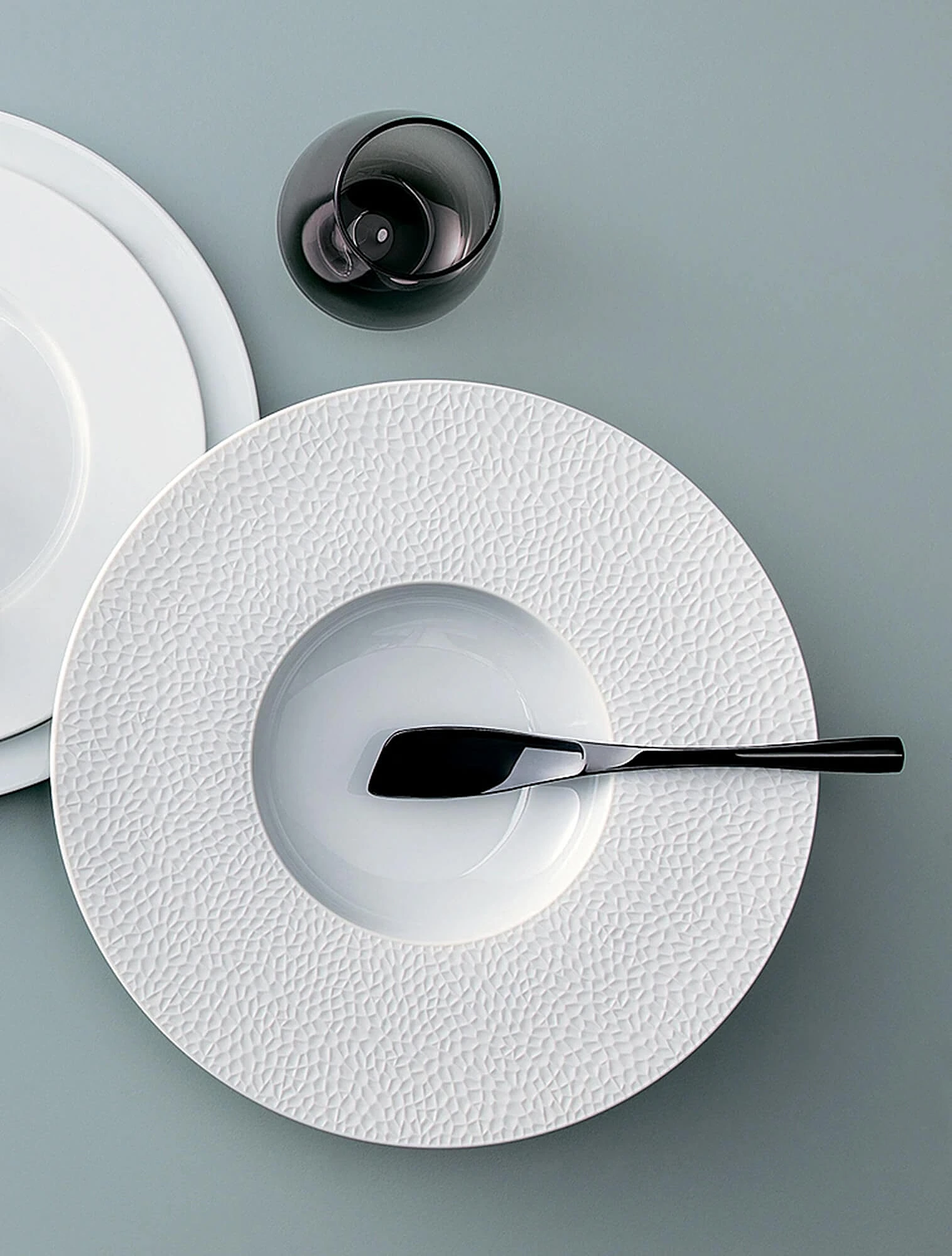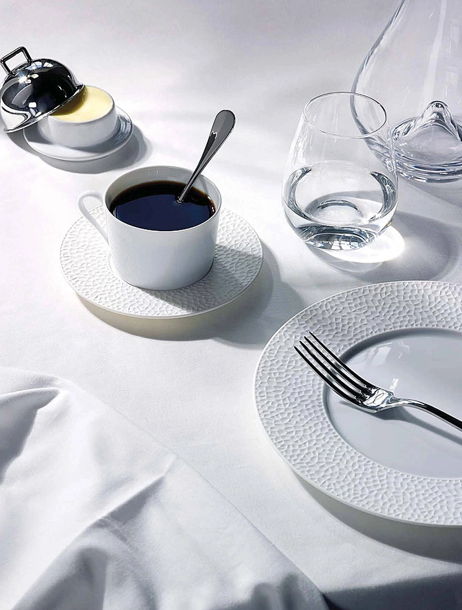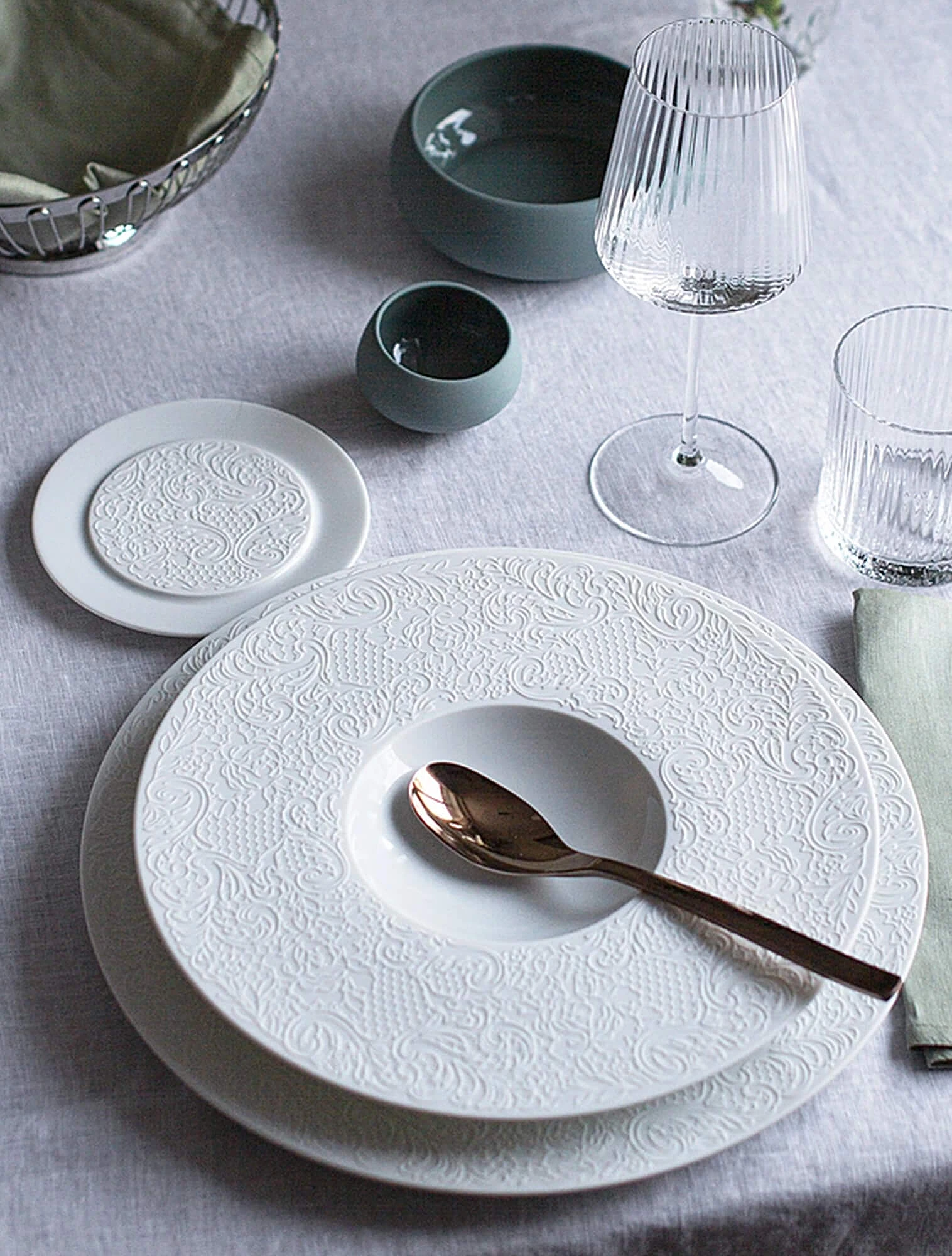 Degrenne делает акцент на самом материале, подчёркивая красоту французского фарфора с помощью фактурных узоров. Например, в коллекциях L Fragments и L Couture.