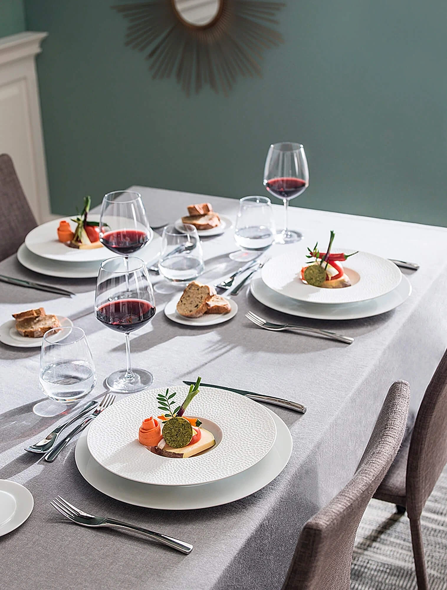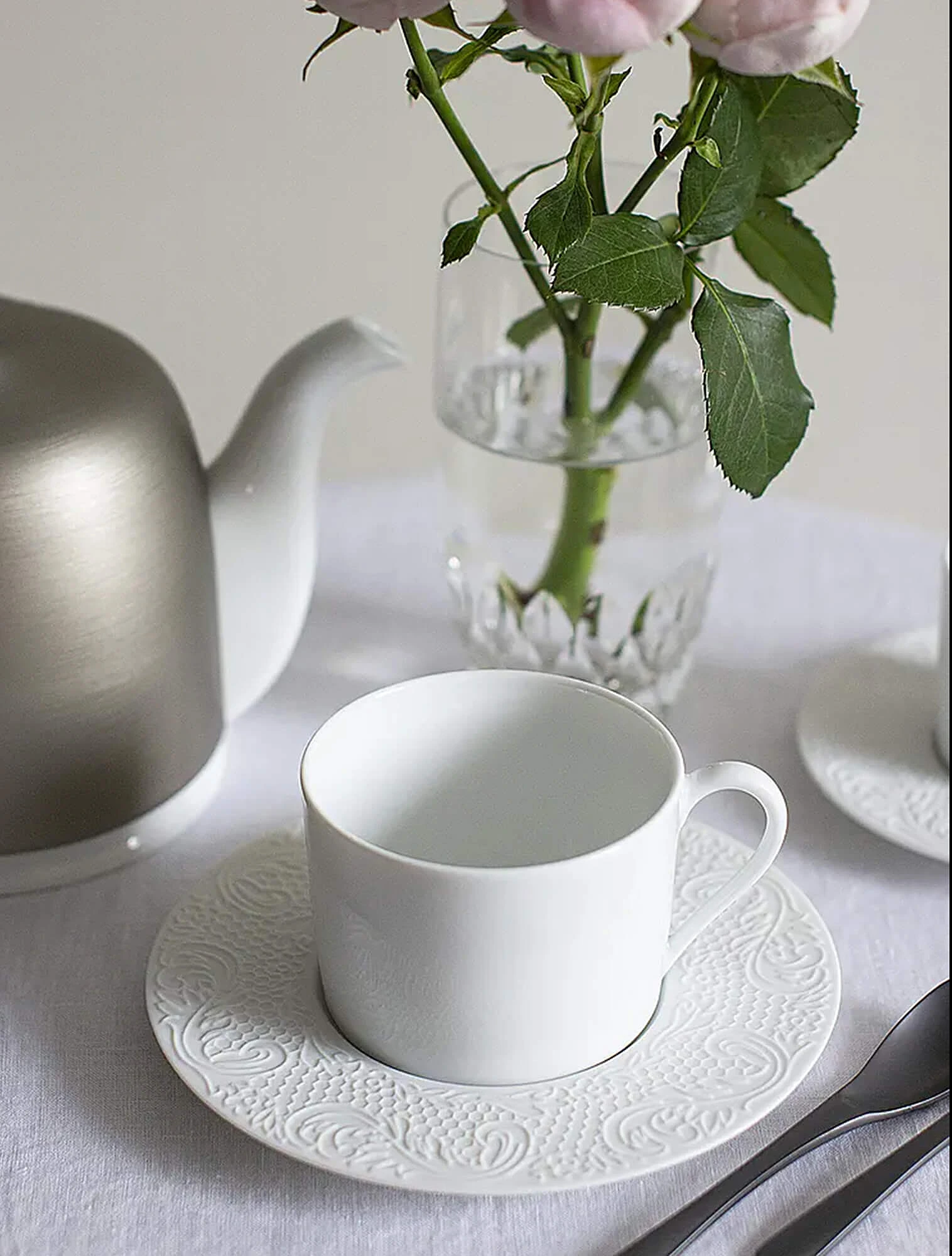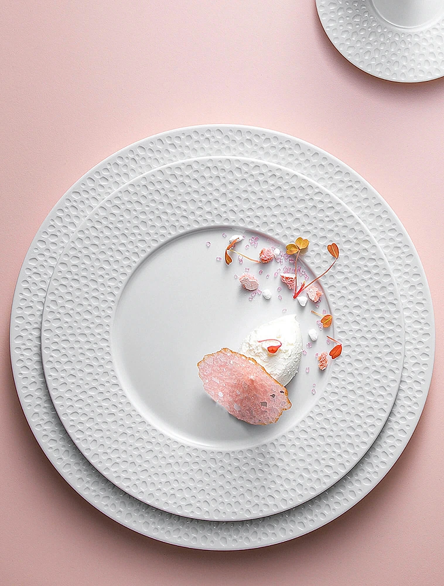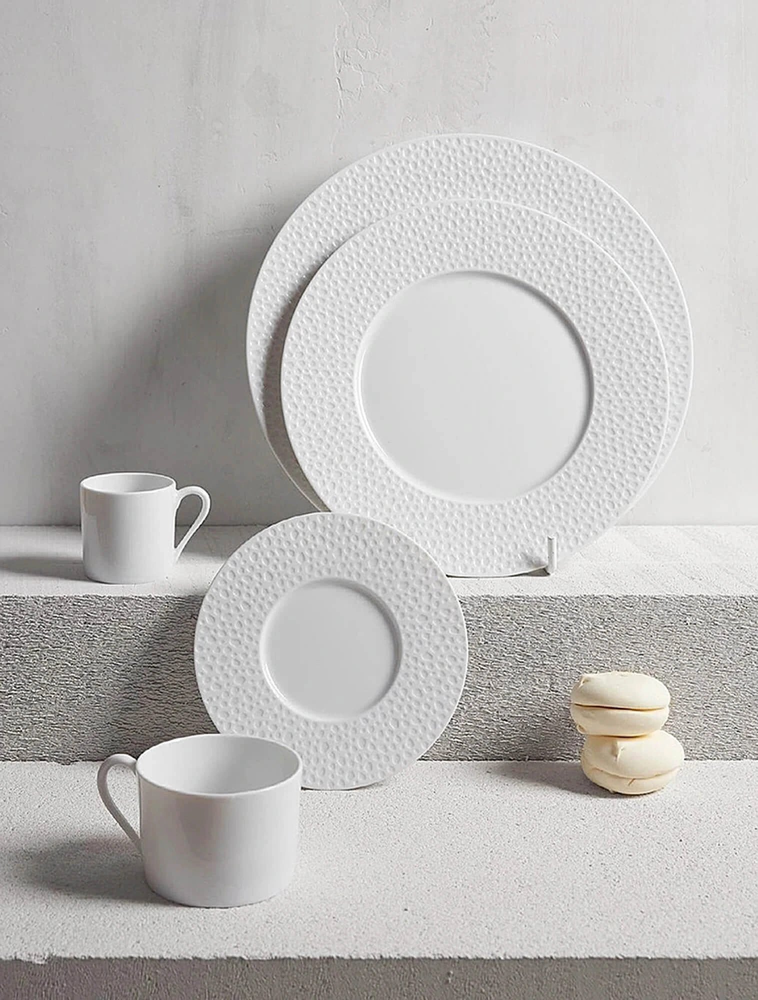 Degrenne делает акцент на самом материале, подчёркивая красоту французского фарфора с помощью фактурных узоров. Например, в коллекциях L Fragments и L Couture.