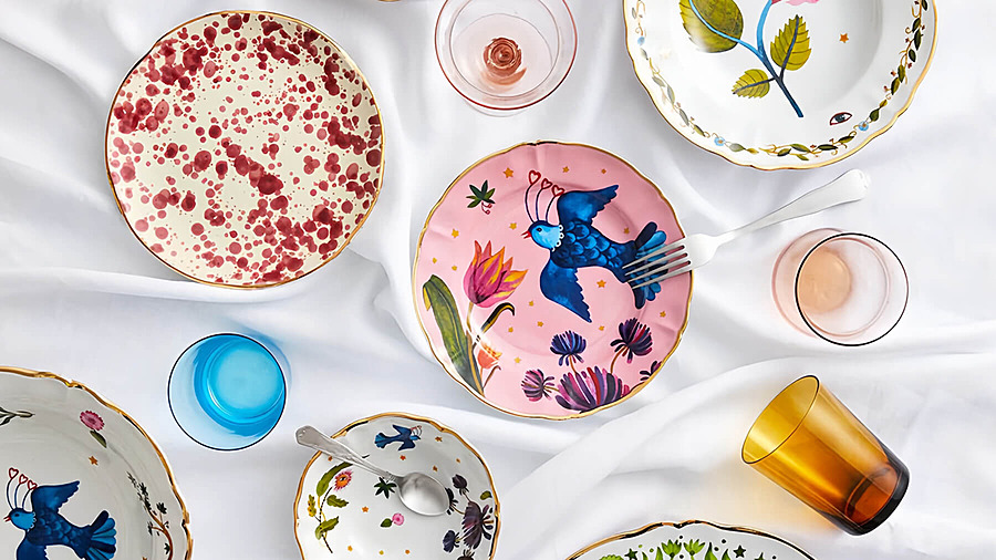 Одна из самых узнаваемых тарелок в дофаминовом стиле — розовая с синей птицей из коллекции Fabula Profumo. Именно с неё для многих началось знакомство с брендом Bitossi Home. Она стремительно набрала популярность в социальных сетях, привлекая внимание не только к Bitossi, но и ко всей дофаминовой эстетике.