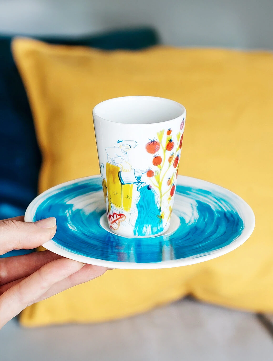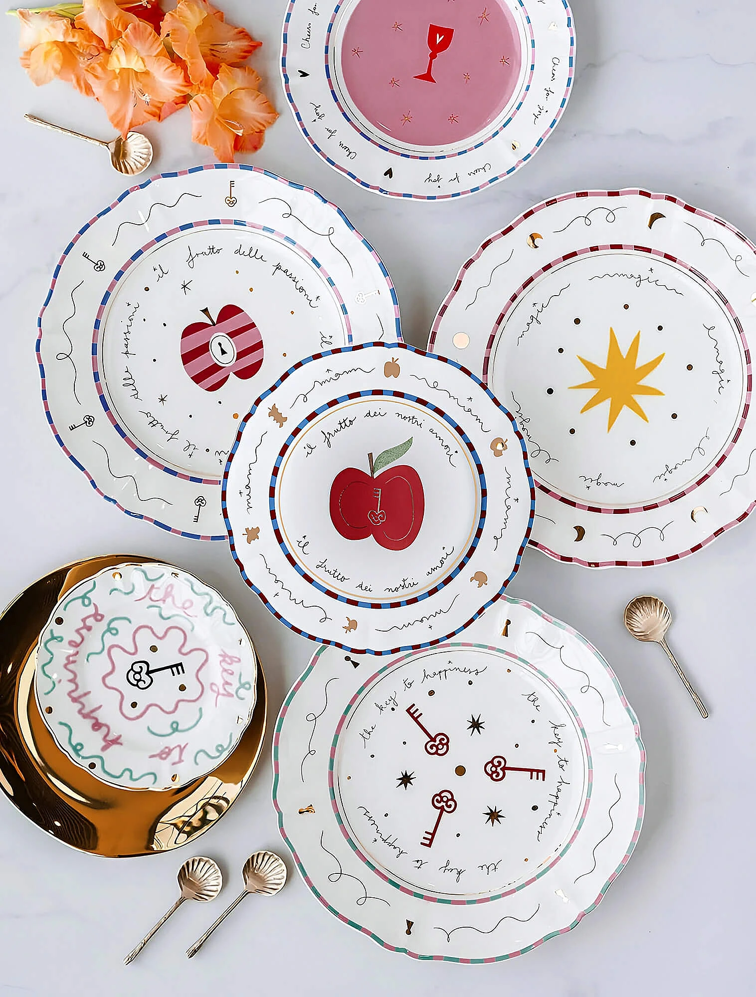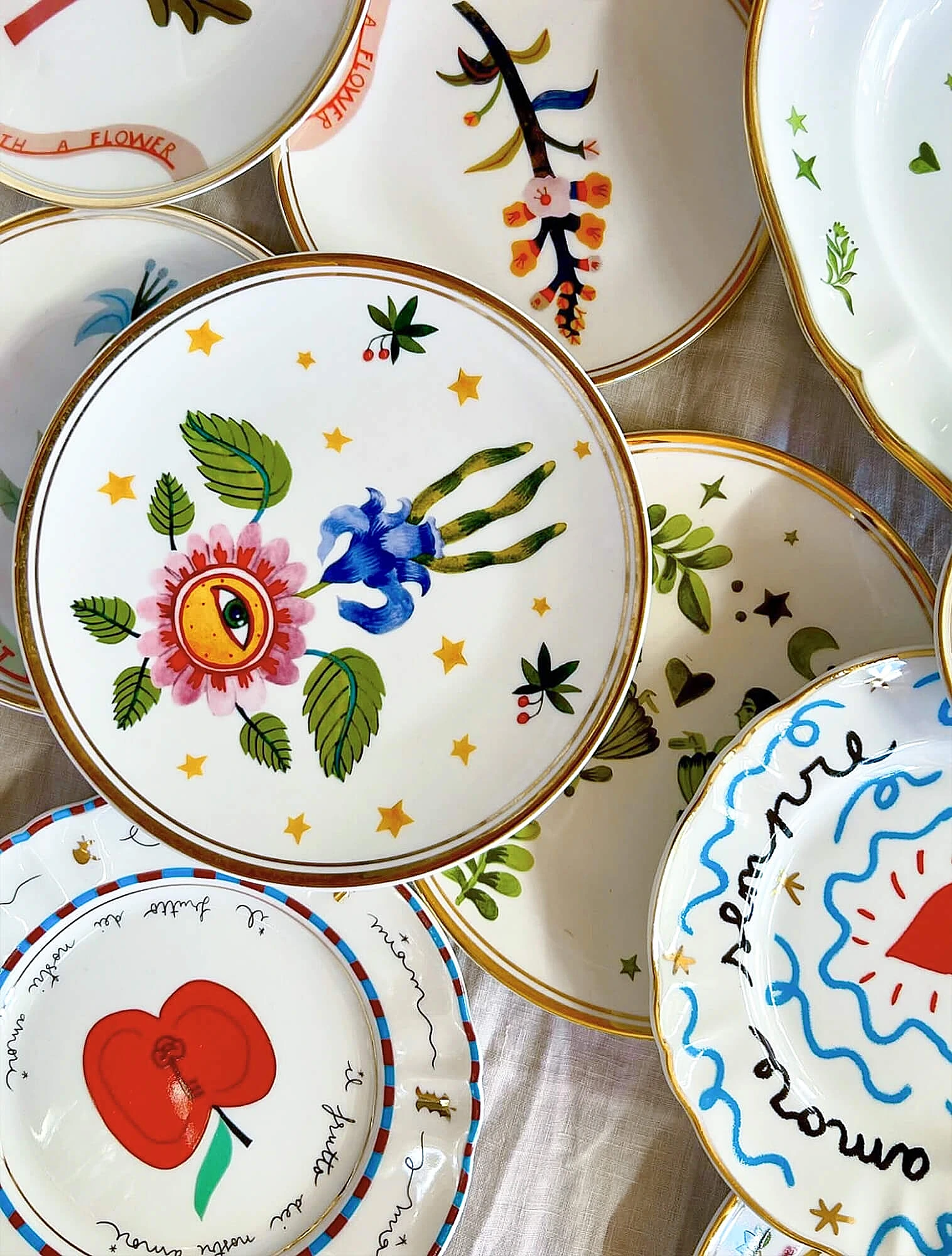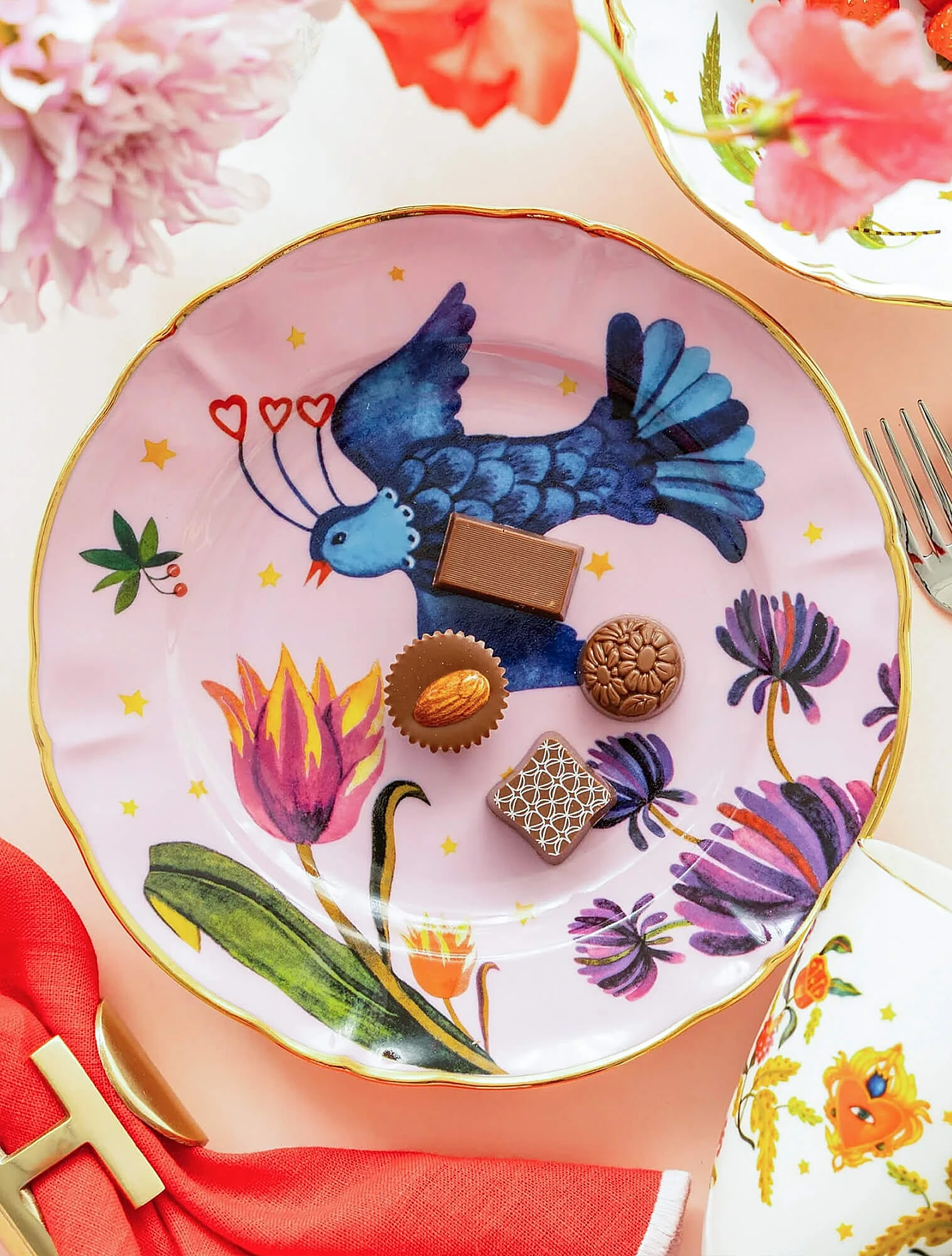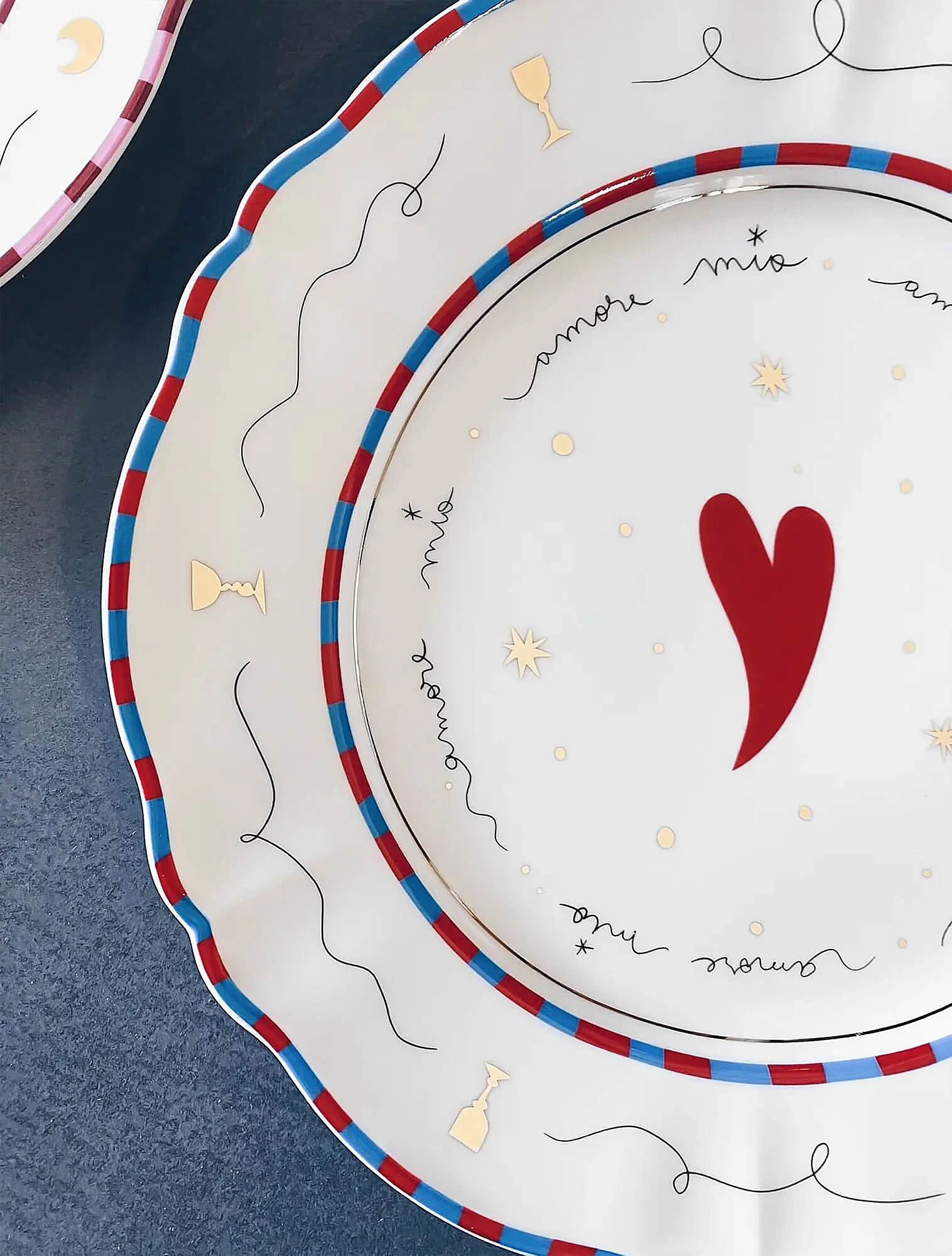 Одна из самых узнаваемых тарелок в дофаминовом стиле — розовая с синей птицей из коллекции Fabula Profumo. Именно с неё для многих началось знакомство с брендом Bitossi Home. Она стремительно набрала популярность в социальных сетях, привлекая внимание не только к Bitossi, но и ко всей дофаминовой эстетике.