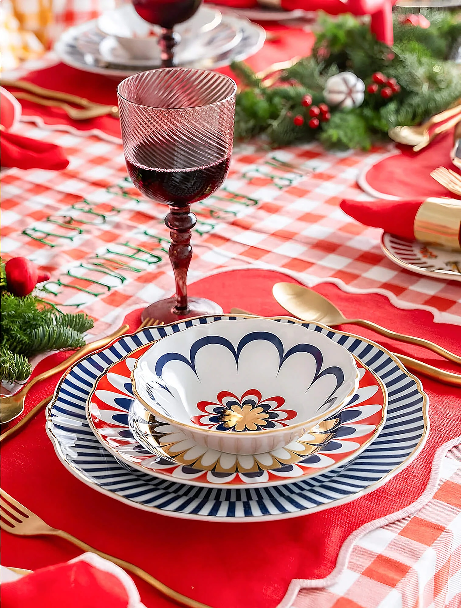При этом цвет сам по себе не делает посуду дофаминовой. Существует множество ярких коллекций, лишённых характерного настроения. Например, серия Florentine от Wedgwood: её палитра разнообразна, но орнамент с грифонами и фениксами остаётся строго классическим.