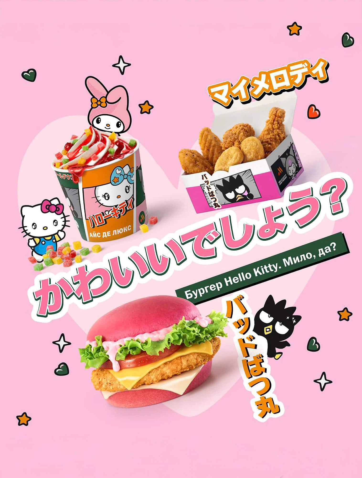 В 2025 году дофаминовый тренд добрался даже до фастфуда — сеть «Вкусно — и точка» выпустила эксклюзивный розовый бургер Hello Kitty. Идея сработала: в Москве и других городах России выстраивались очереди, а сама новинка быстро стала вирусной.
