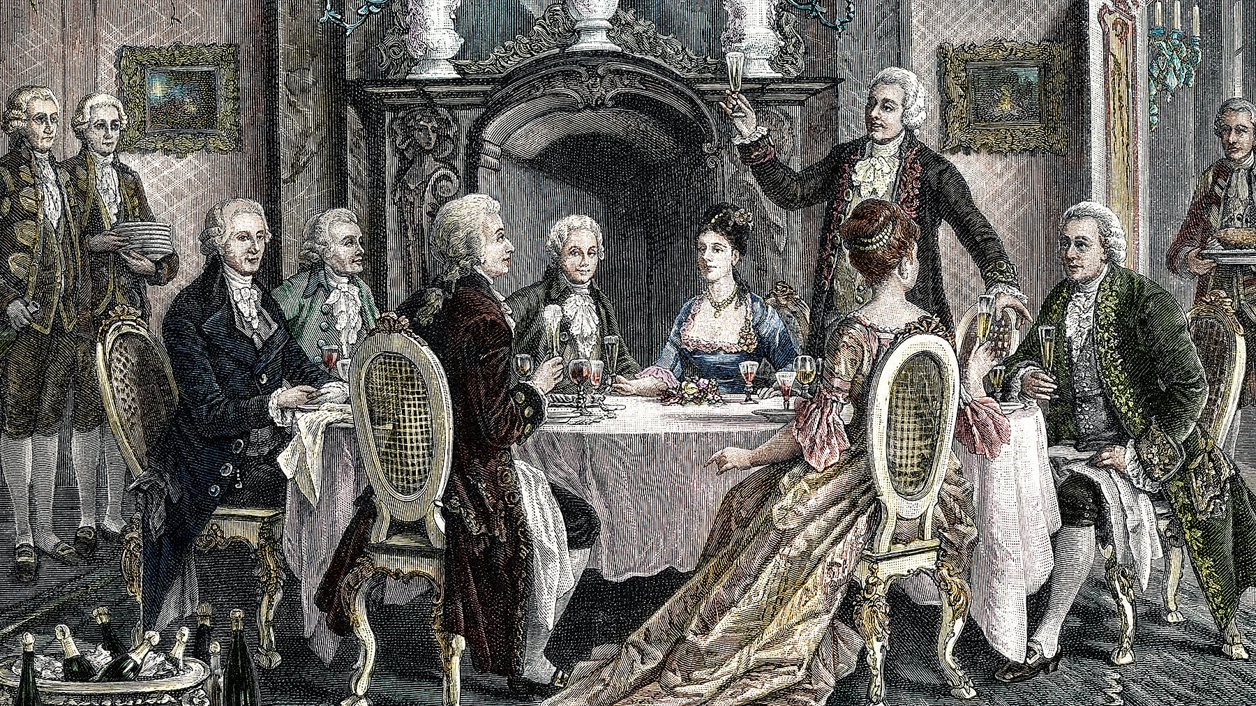 К 19 веку ситуация изменилась. Шампанское вышло за пределы дворцовых залов и стало появляться в ресторанах, отелях и домах состоятельных горожан. Сложный церемониал сменил столовый этикет — более простые и понятные каждому правила.