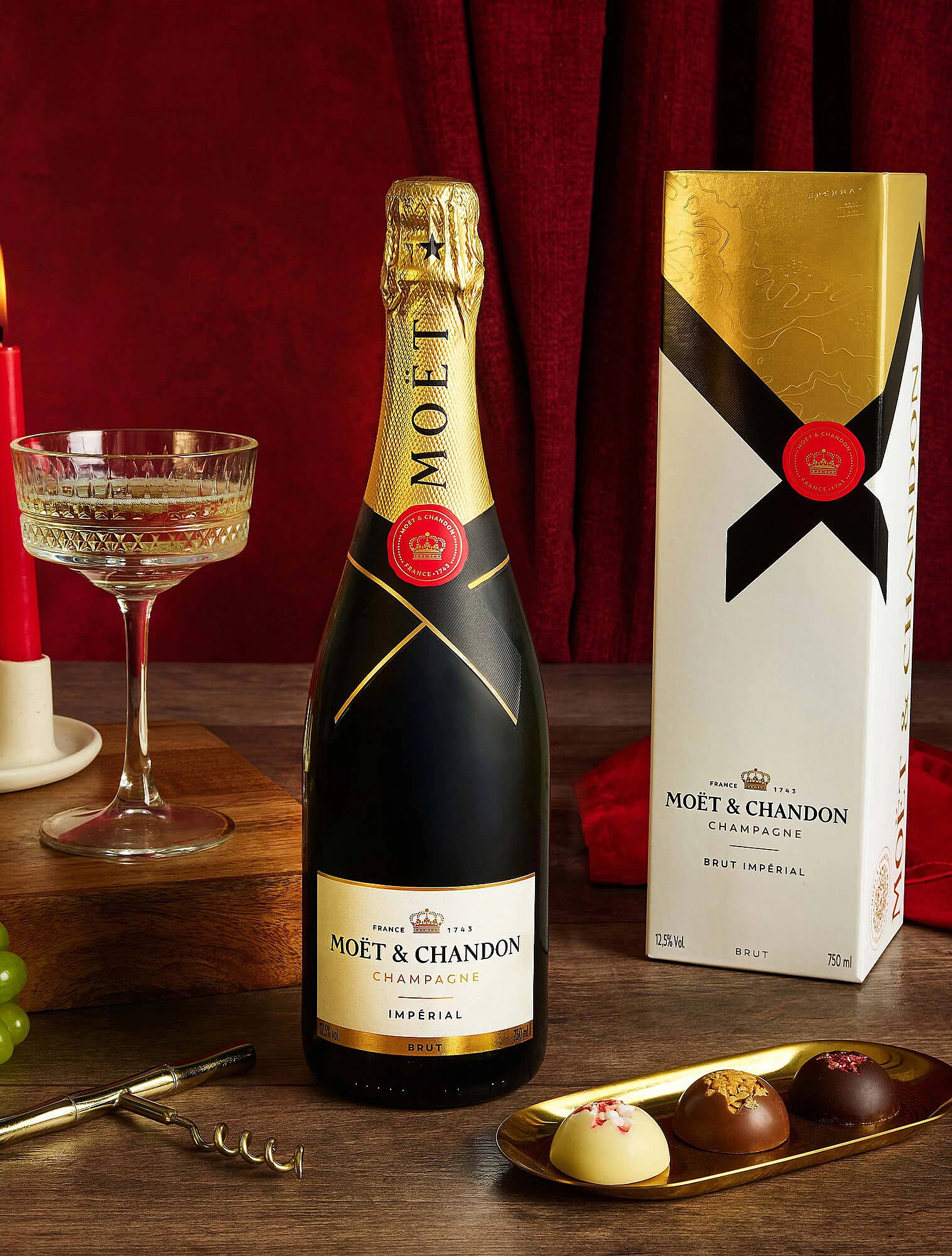В формальной обстановке — например, на деловой встрече, при вручении подарка коллеге или партнёру — дополнения не требуются. Здесь уместнее минимализм: бутылка классического brut или extra brut в аккуратной коробке или футляре, без лент и декоративных элементов.