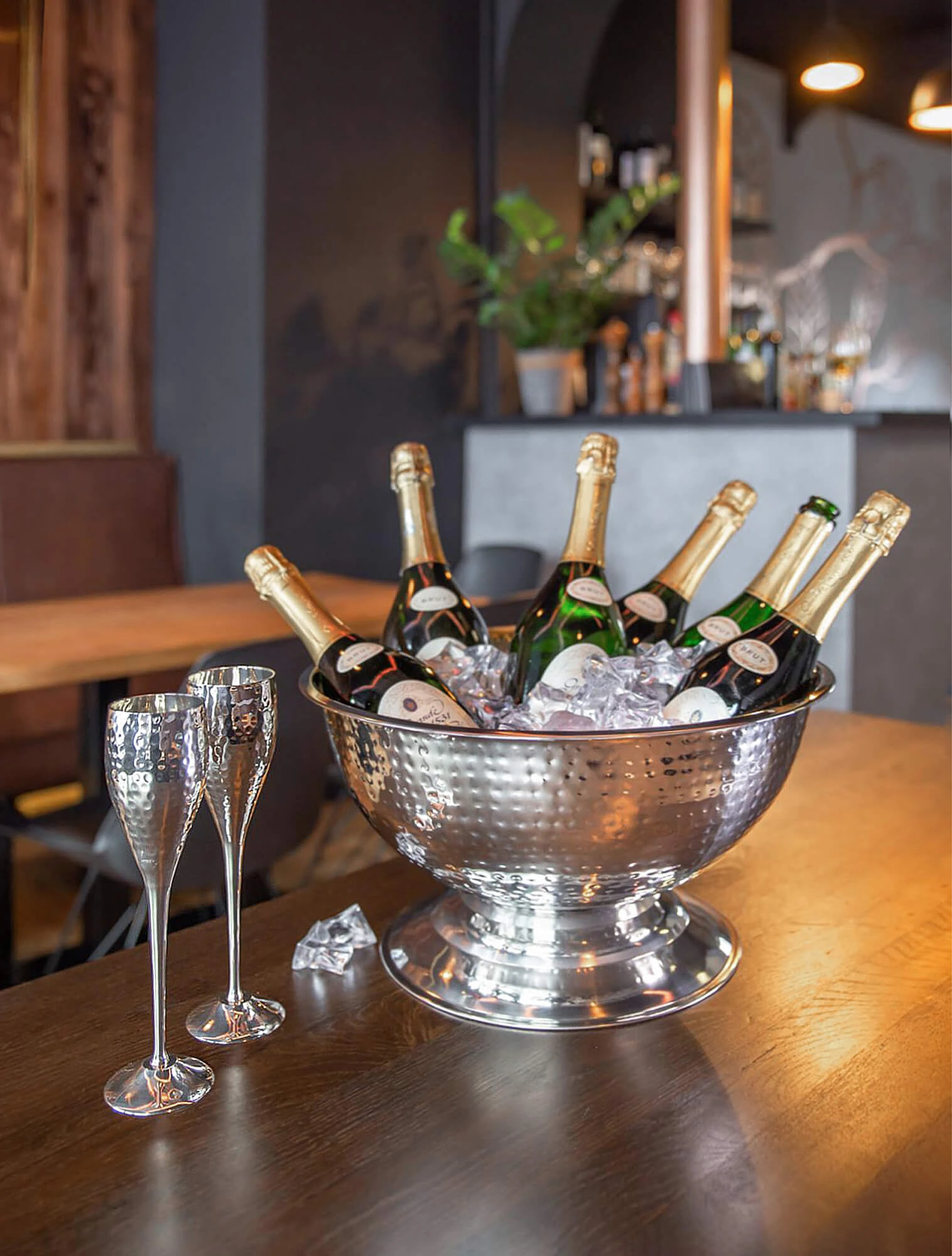 В ресторанах и винных барах используют более профессиональный метод: бутылку помещают в ведёрко или кулер со смесью льда и воды в равных частях. Такая среда охлаждает шампанское равномерно всего за 20–30 минут и поддерживает нужную температуру во время ужина. Сомелье рекомендуют использовать ведёрко и в домашних условиях.