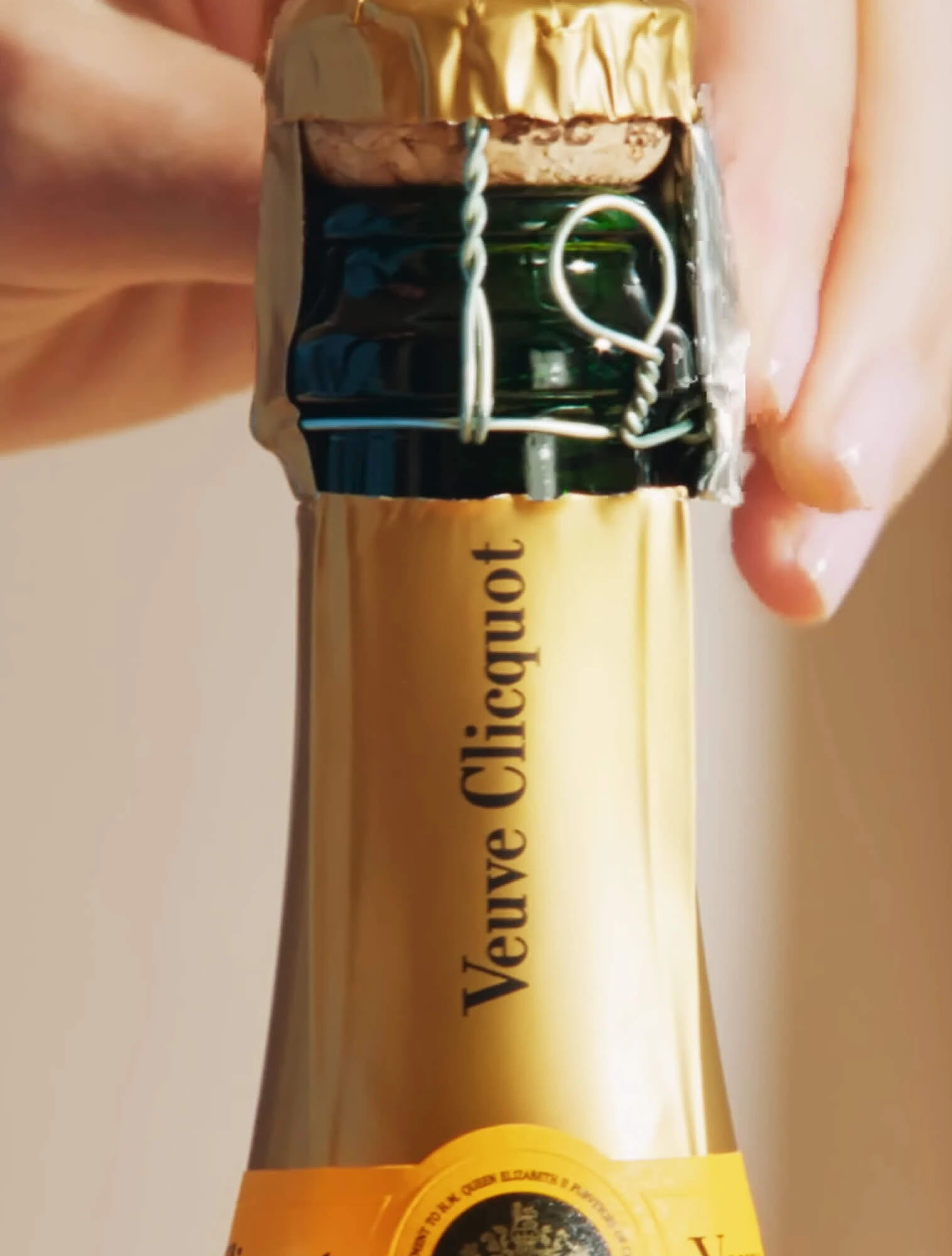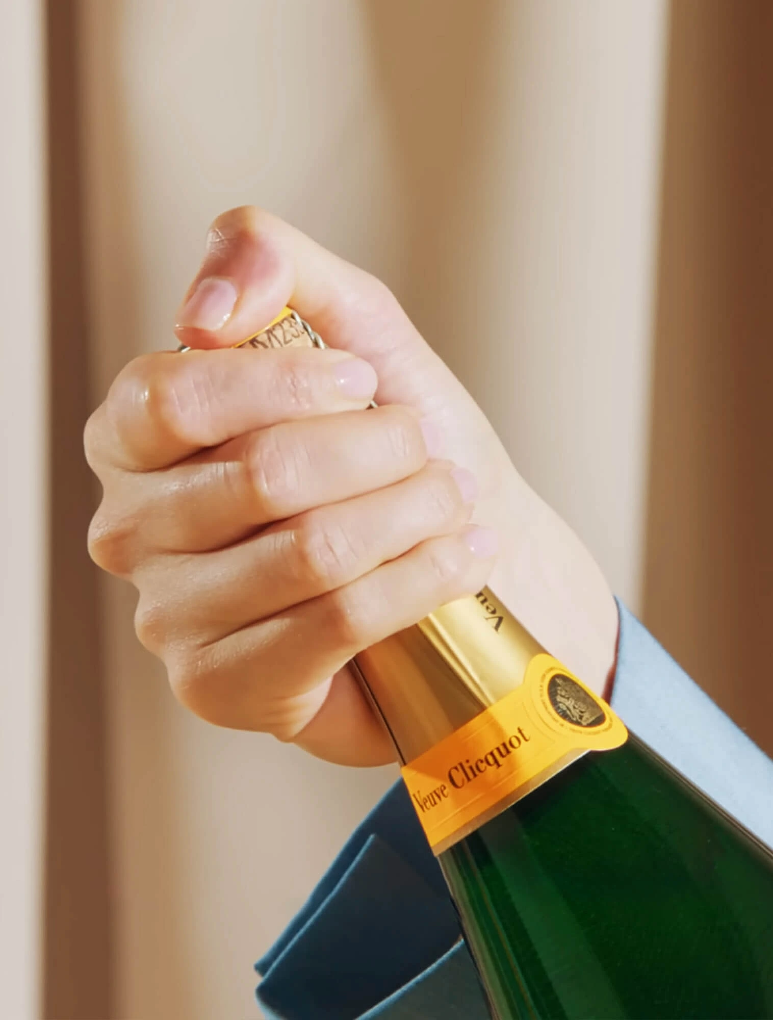 Пробку всегда держат рукой, а поворачивают бутылку — медленно и аккуратно. Так газ выходит постепенно, а пробка остаётся под контролем.