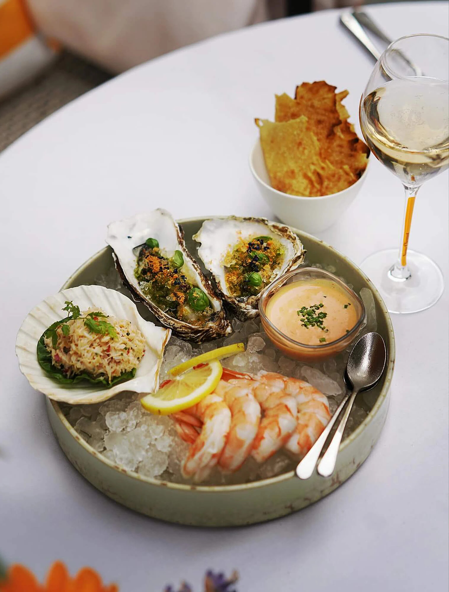 Сухие сорта игристых вин (brut, extra brut) традиционно подают в начале застолья — как аперитив или сопровождение лёгких закусок. Они отлично сочетаются с устрицами, креветками и нежными сырами: свежесть таких вин подчёркивает вкус морепродуктов и не конфликтует с кислотностью соусов.