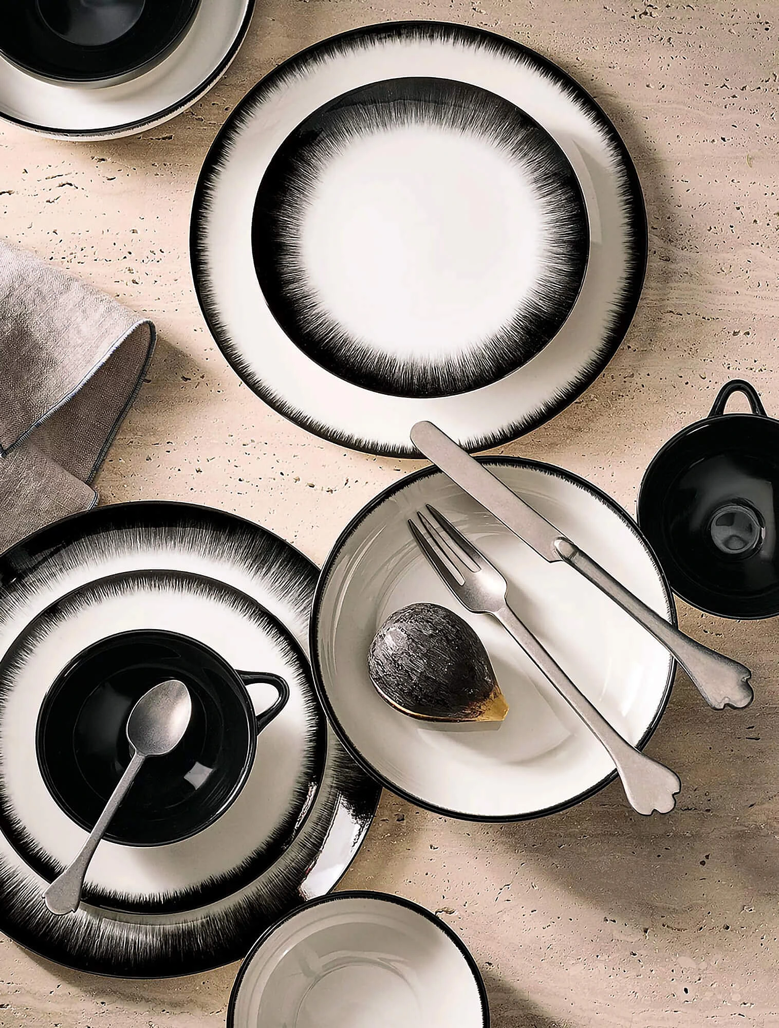 Коллекция De от Анн Демельмейстер выполнена именно в этом стиле, она построена на игре светотени: черные мазки кистью на белом фарфоре.