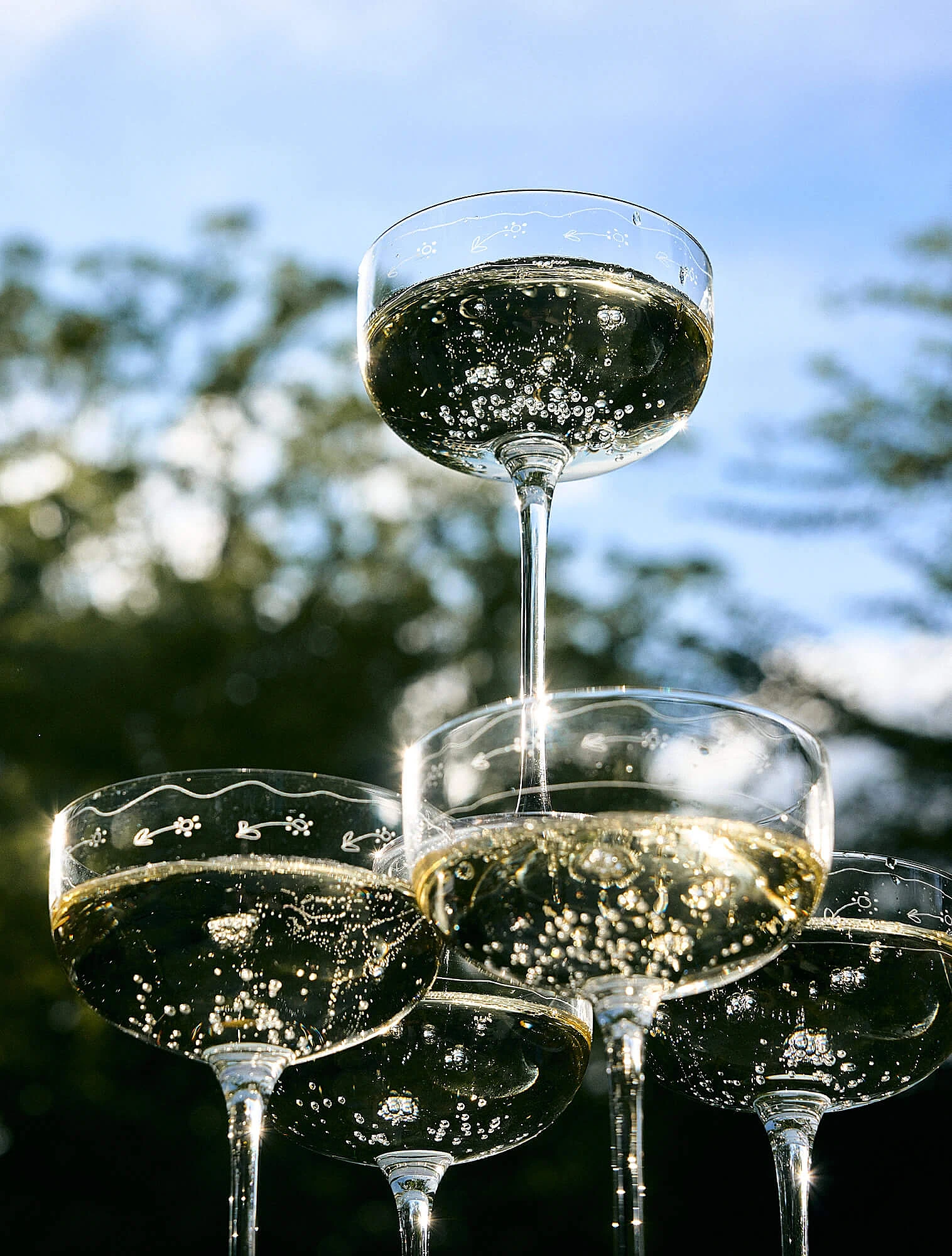 - Оптимален для: коктейлей, десертных и сладких игристых вин, ретро-сервировок, каскада бокалов и торжественной подачи.