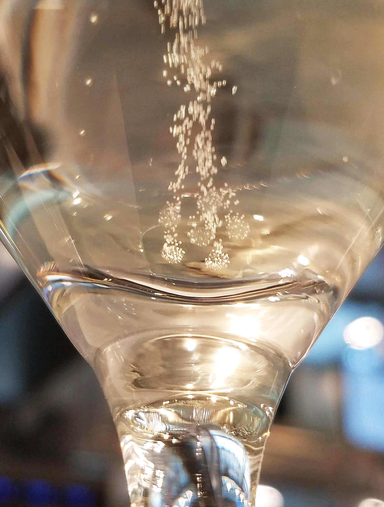 Во флейте вино воспринимается ярче и свежее. Узкая форма удерживает газ дольше, пузырьки поднимаются одной тонкой струйкой, а вкус становится звонким и чуть более острым.
