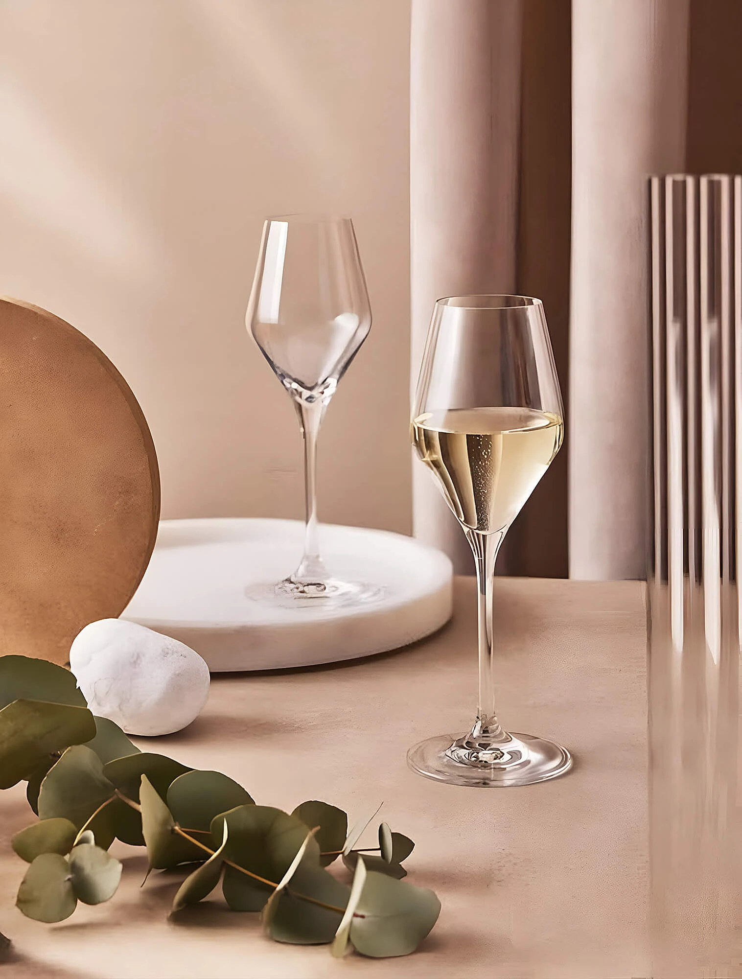 Если вы не хотите держать дома целую коллекцию бокалов или шампанское появляется на вашем столе нечасто, можно выбрать для подачи бокал для белого вина среднего размера с лёгким сужением кверху. Конечно, в профессиональной подаче «универсального» бокала не существует. Но для домашнего формата такой компромисс возможен.