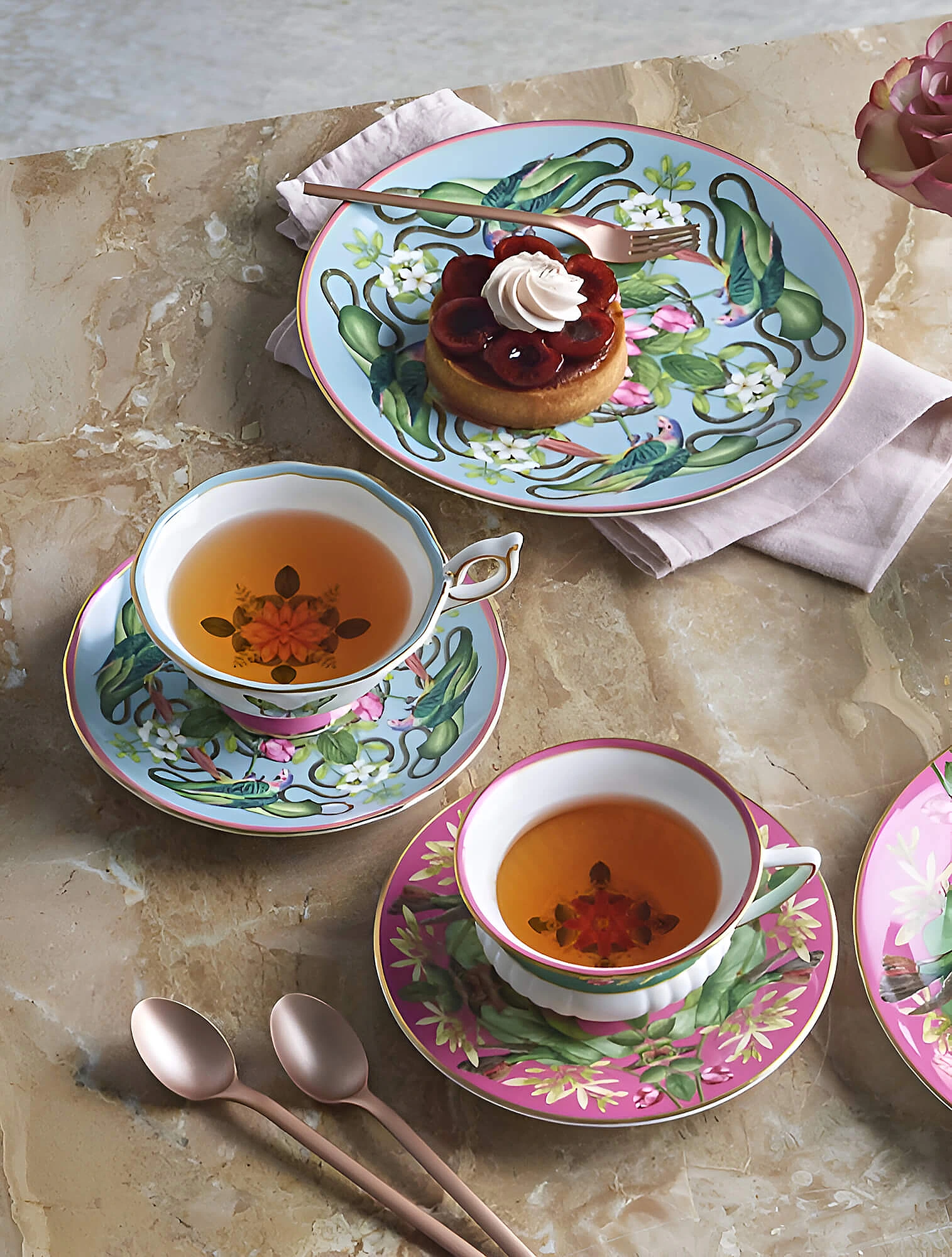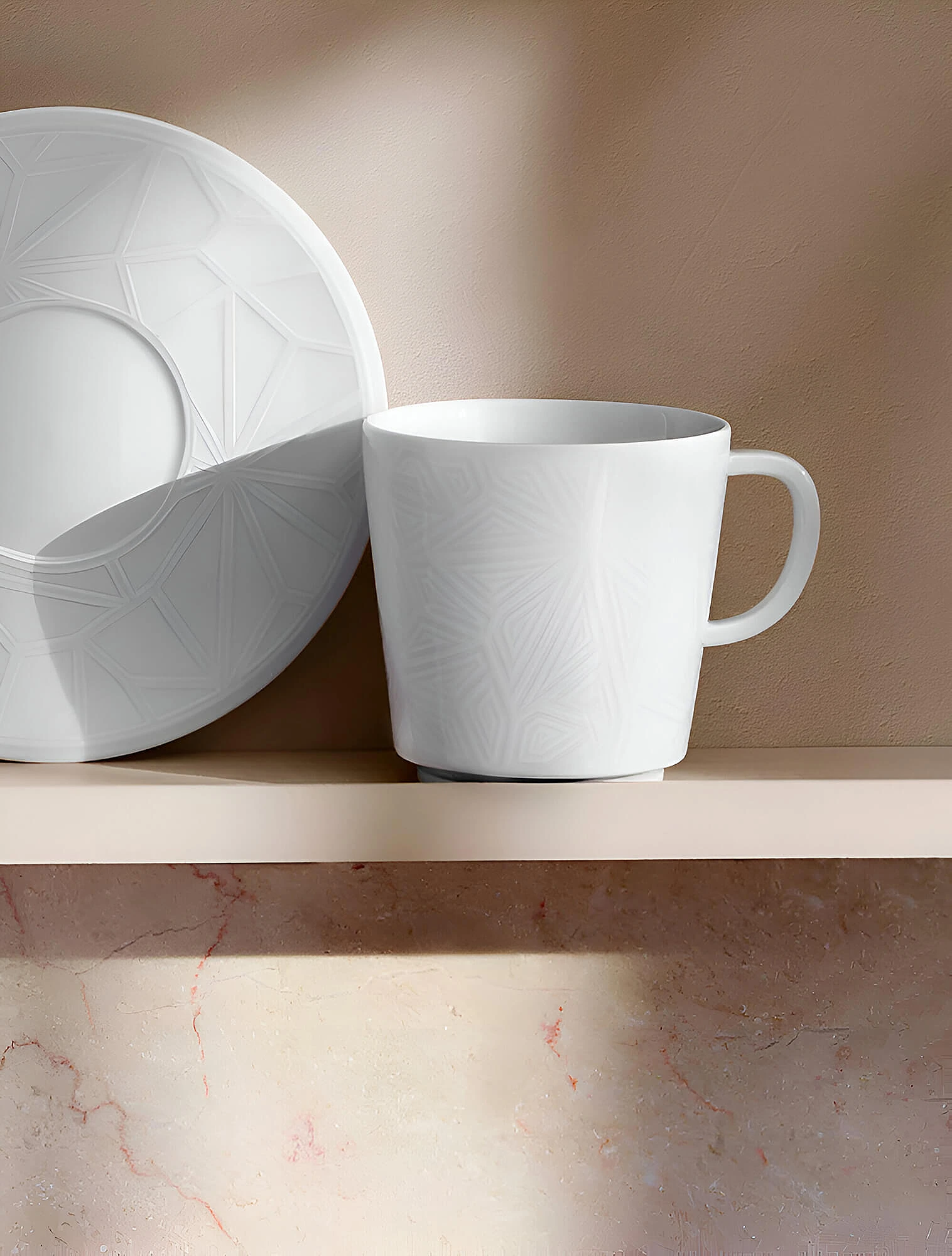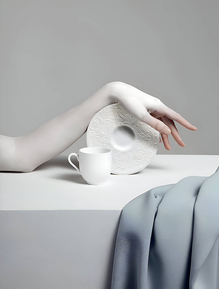 Похожий приём использует другая лиможская мануфактура Raynaud. В коллекции Italian Renaissance глазурь также гармонично сочетается с элементами «бисквита». К примеру, чашка из серии покрыта блестящей глазурью, тогда как блюдце осталось матовым. Это не только красиво, но и практично: чашка постоянно контактирует с такими красящими напитками, как чай и кофе. Чтобы за посудой было легче ухаживать, чашку сделали глянцевой.