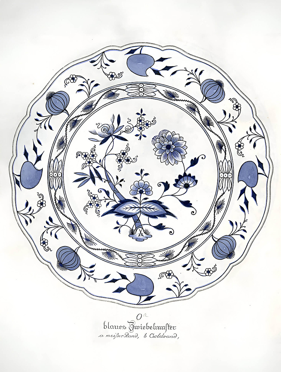Мейсенский фарфор — это классический твёрдый фарфор. Один из самых известных мотивов фабрики — «луковый узор», разработанный в 1730-х годах и вдохновленный традиционным китайским фарфором.