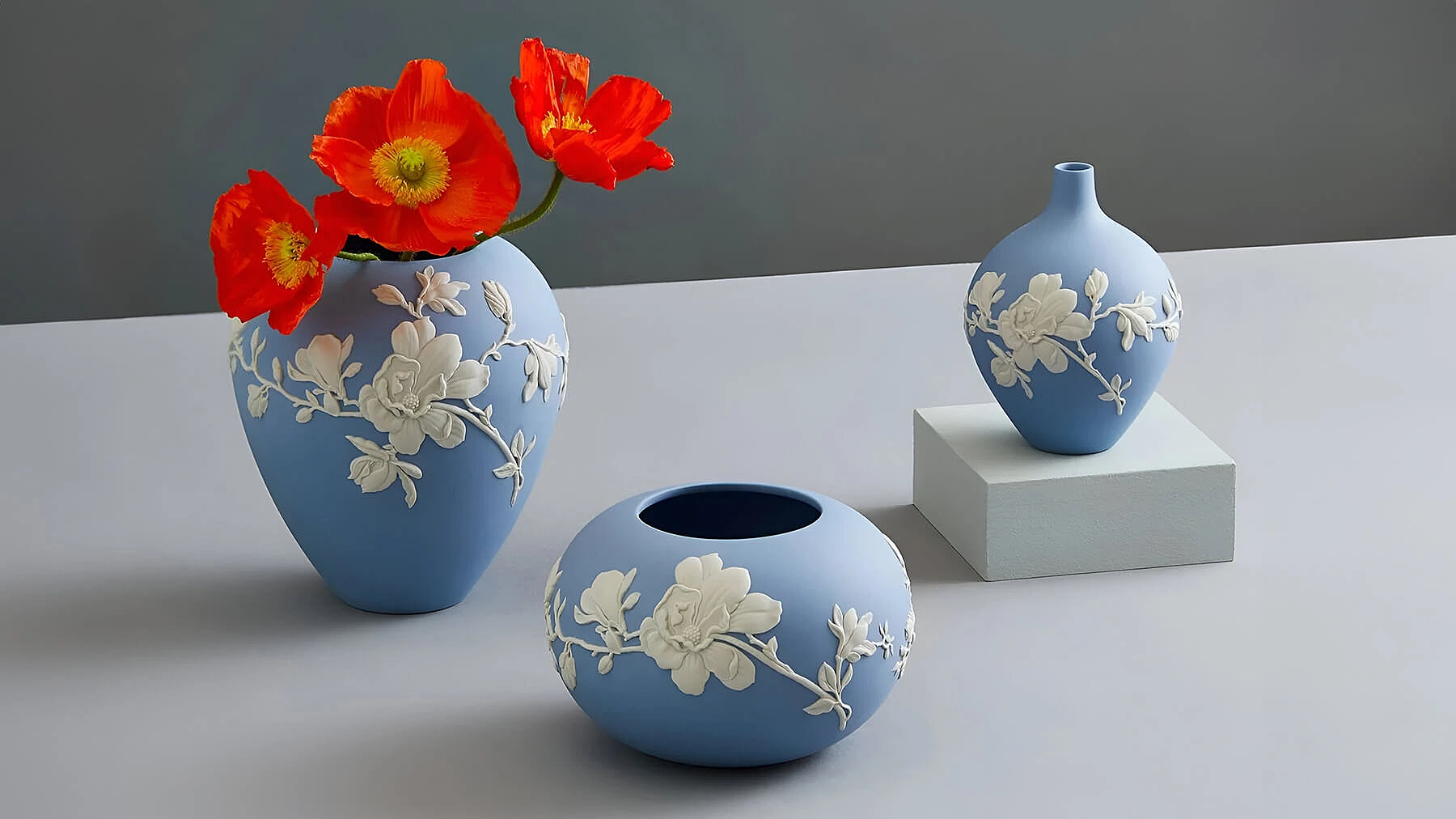 Wedgwood выпускает из «яшмы» вазы, посуду и декоративные фигурки в более чем тридцати цветах — от фирменного светло-голубого (Wedgwood Blue) до более ярких оттенков. Чаще всего изделия украшены белым рельефным узором с классическим мотивом.