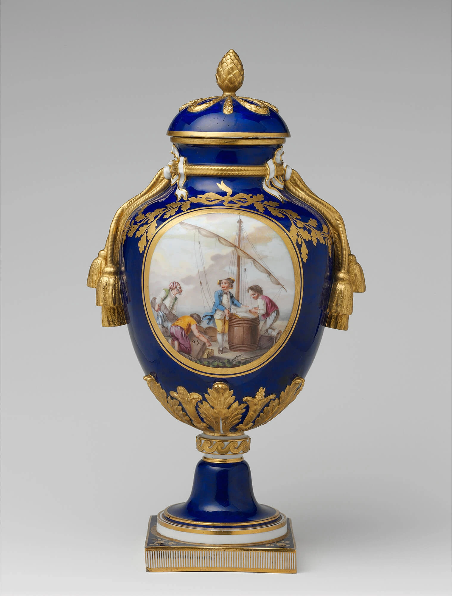 Севрская мануфактура славилась мастерством цветной росписи. Фабрика разработала собственную палитру оттенков для декорирования фарфора. Особенно популярными были её вазы, покрытые глазурью глубокого синего цвета — это был «Королевский синий» (bleu de roi). Другой знаковый цвет мануфактуры — «розовый Помпадур». Он идеально дополнял пасторальные сцены и цветочные мотивы в стиле рококо.