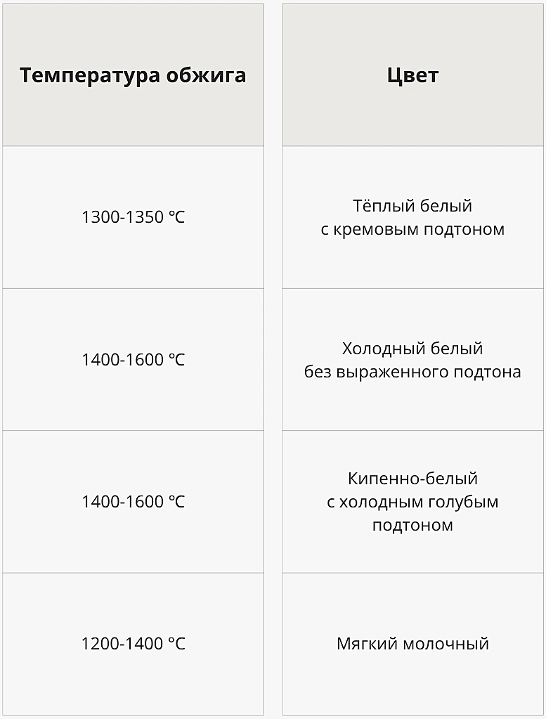 Помимо прочности, высокое содержание каолина в составе придаёт фарфору холодный белый цвет.