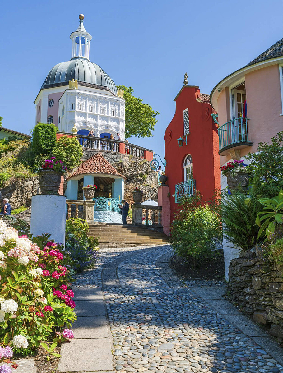 Интересно, что Клаф спасал исторические здания, предназначенные под снос. Их восстанавливали и вписывали в общий облик деревни. Получался своего рода архитектурный коллаж из старых и новых построек. Яркие дома, купола и статуи создавали иллюзию итальянского городка на фоне сурового дождливого пейзажа Уэльса. За это необычное сочетание Портмерион полюбили туристы.