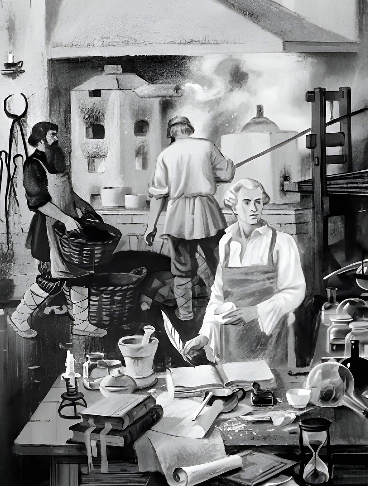 Все процессы производства осуществлялись вручную: от измельчения сырья в больших ступах и жерновах до замешивания фарфорового теста. Труд этот был монотонный, изнуряющий, но не требующий специальной подготовки, как, например, роспись по фарфору.