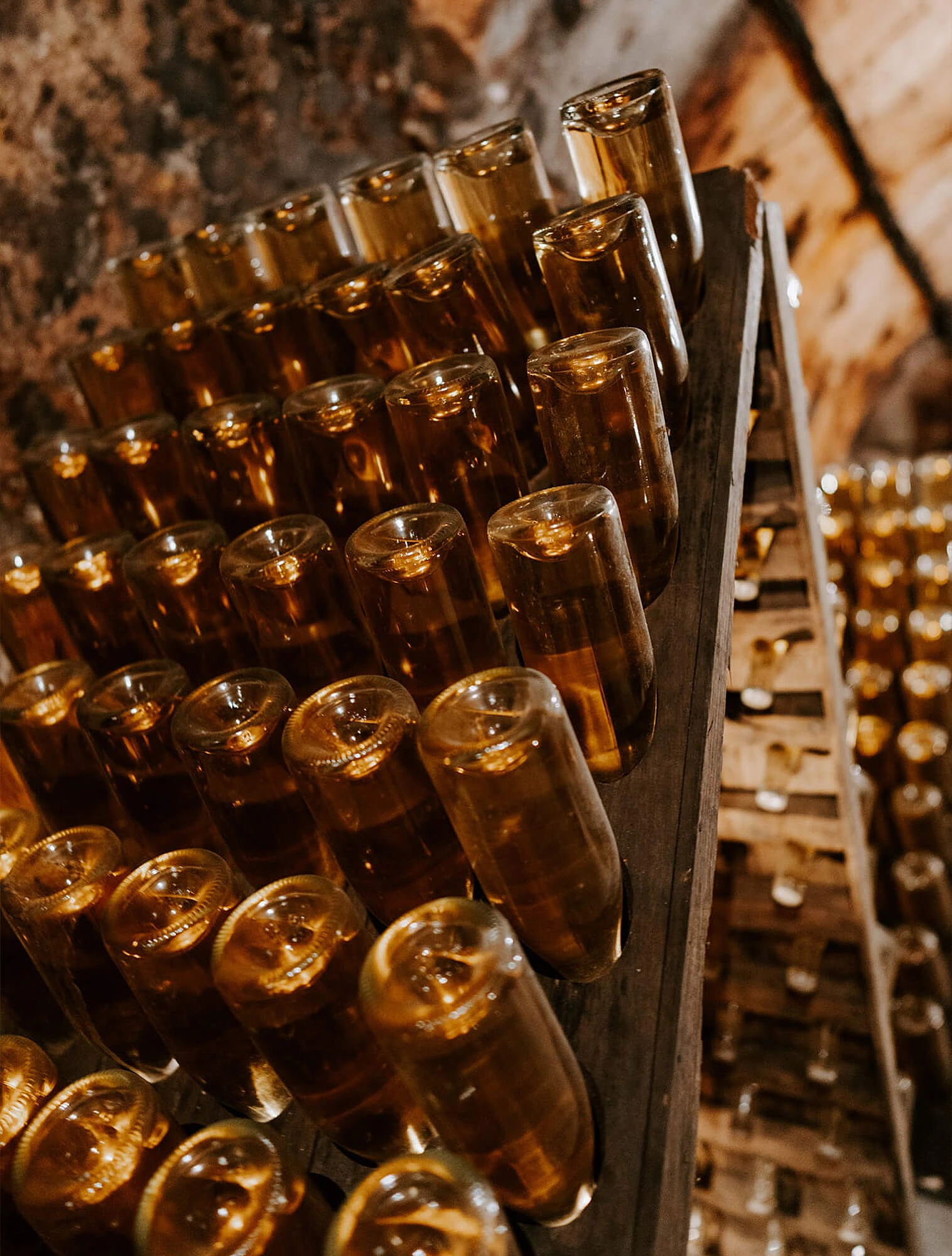 Раньше вино хранили в неглубоких подвалах, где температура менялась в зависимости от сезона, что плохо отражалось на качестве игристых вин. Рюинар заметил, что в старинных меловых шахтах поддерживалась постоянная температура около +10 °C и стабильная влажность. В этих условиях шампанское вызревало медленно и равномерно, сохраняя прозрачность и тонкость пузырьков.