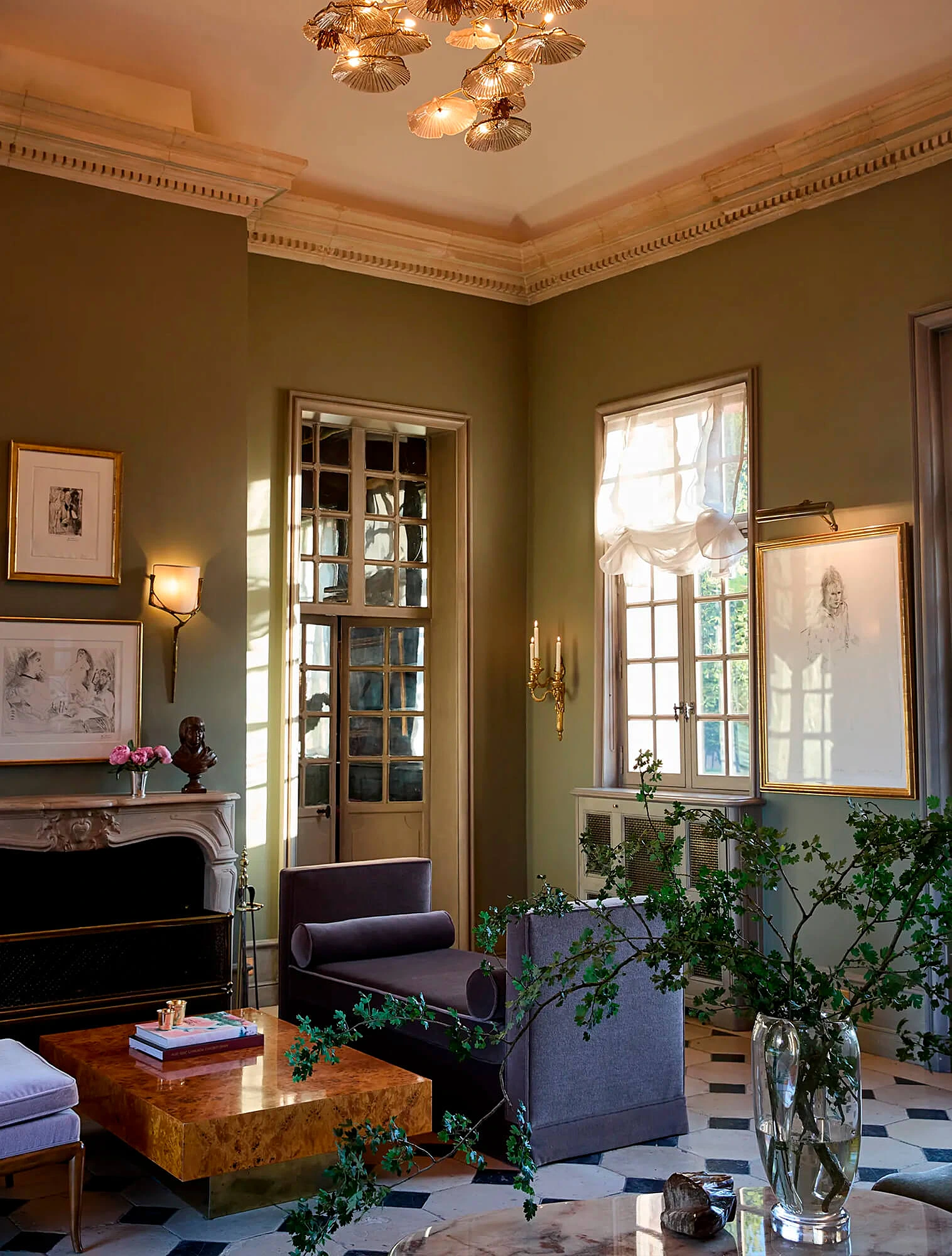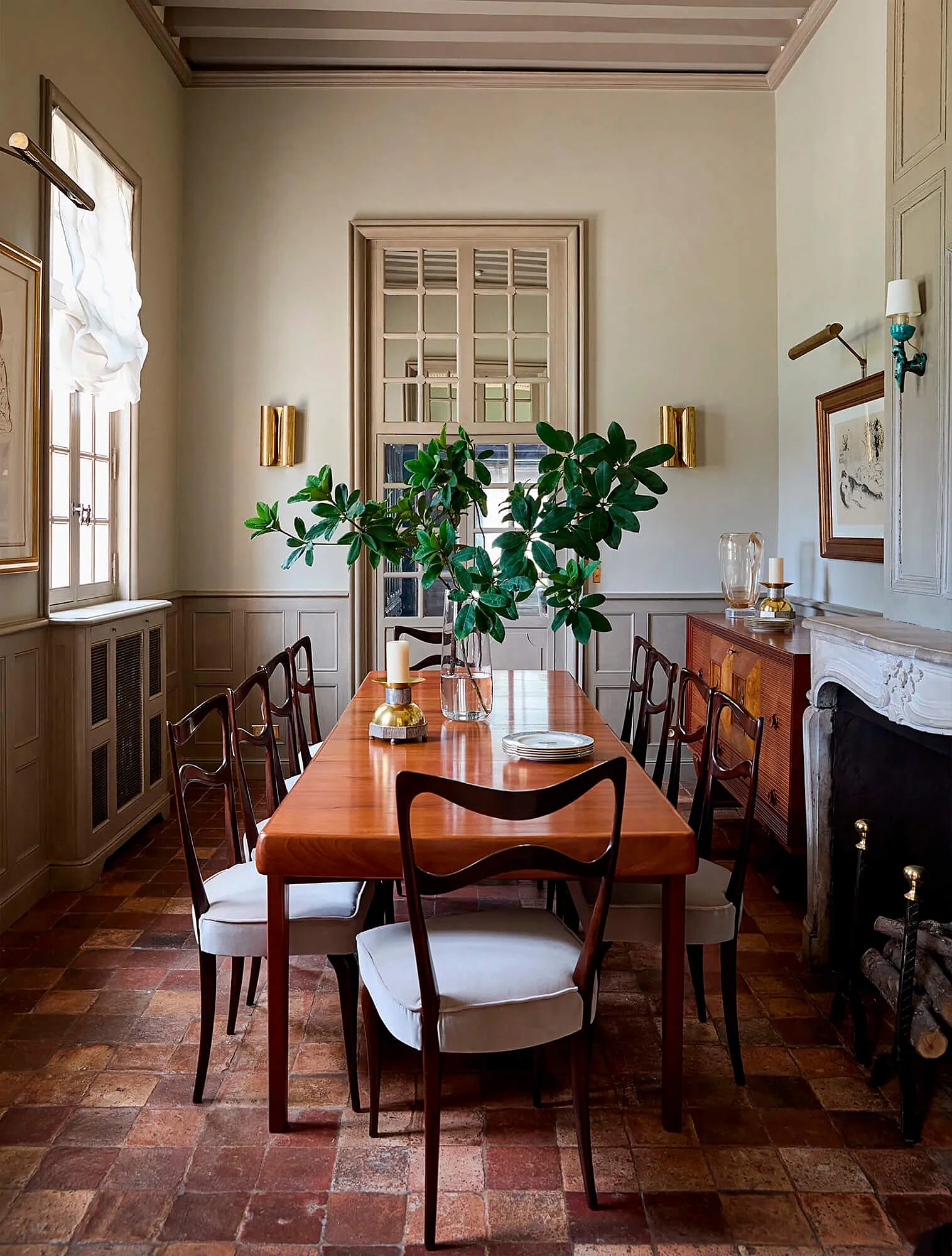 В интерьере действует тот же принцип. Мебель, декор организованы вокруг центрального элемента — например, камина, стола, зеркала.