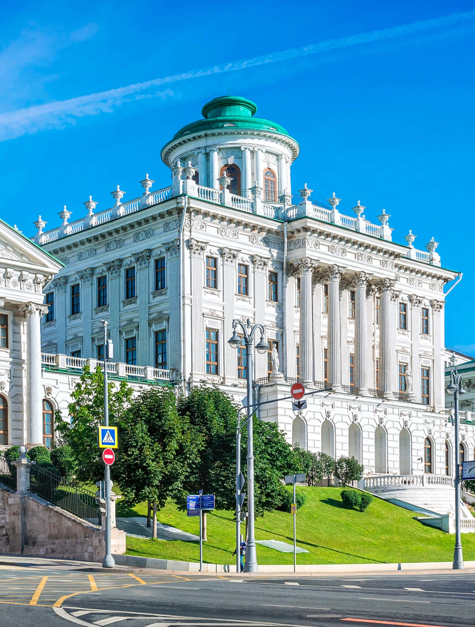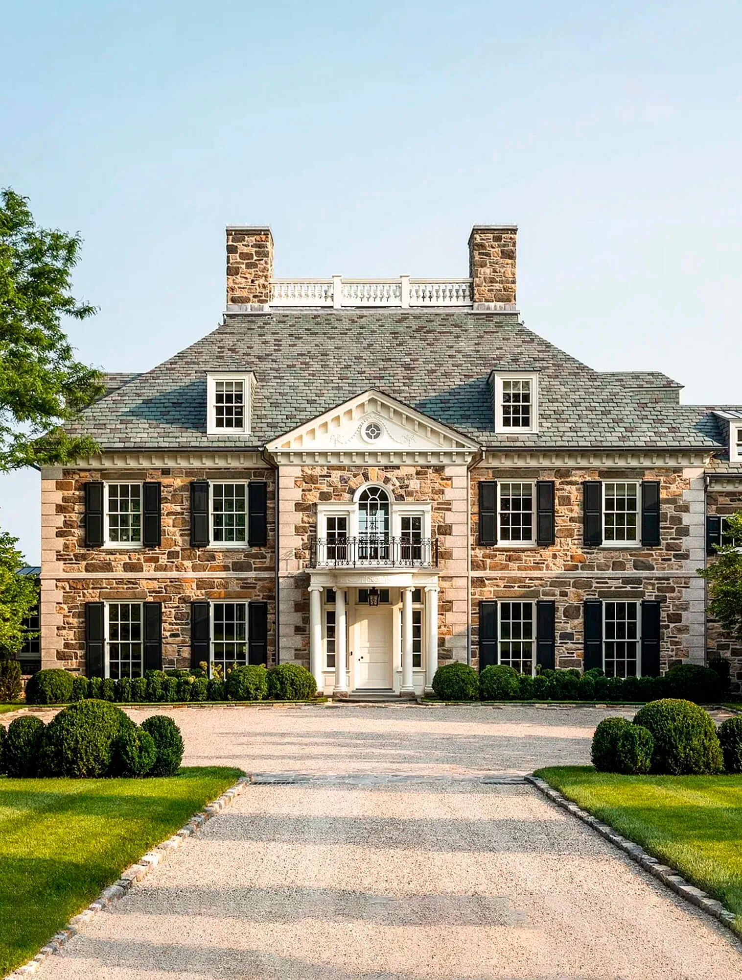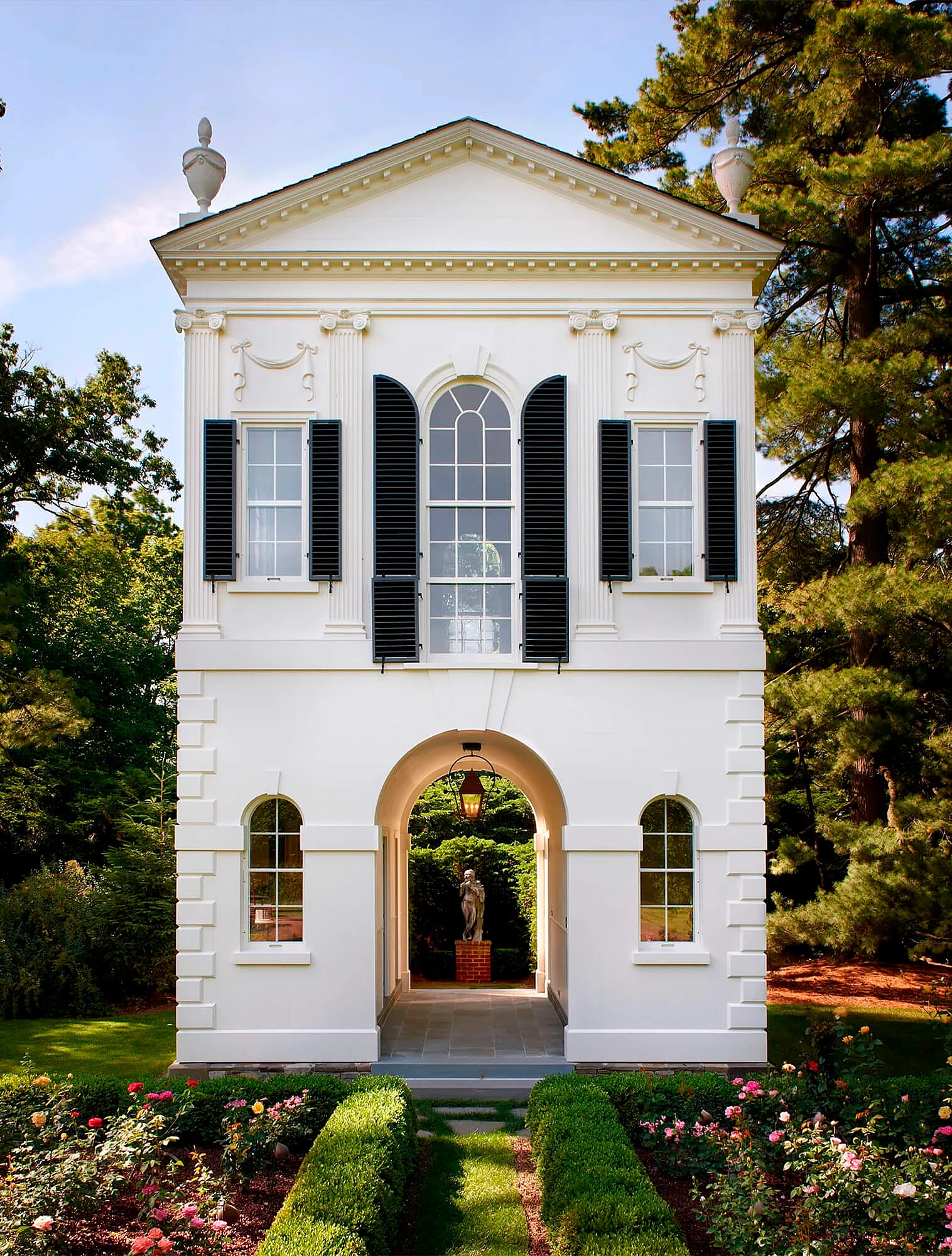 Классика не терпит асимметрии. Симметрия создаёт ощущение порядка, равновесия и спокойствия. Любое классическое здание легко разделить на две равные половины. Центральная ось здания всегда подчёркнута — например, колоннами, обрамляющими входную дверь.
