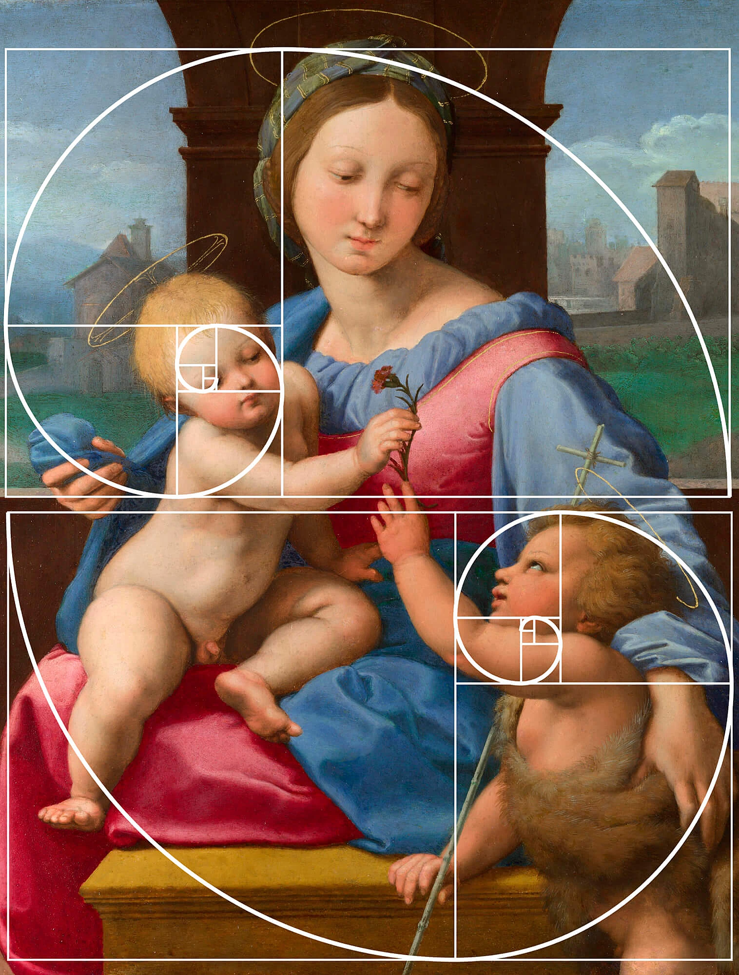 Математически эту пропорцию выражают как 1:1,618. Ещё её формулируют следующим образом: «меньшая часть относится к большей так же, как большая — ко всему отрезку». По сути это просто один из способов описать одну и ту же идею: две части соотносятся «красиво», когда одна примерно в 1,6 раза больше другой.