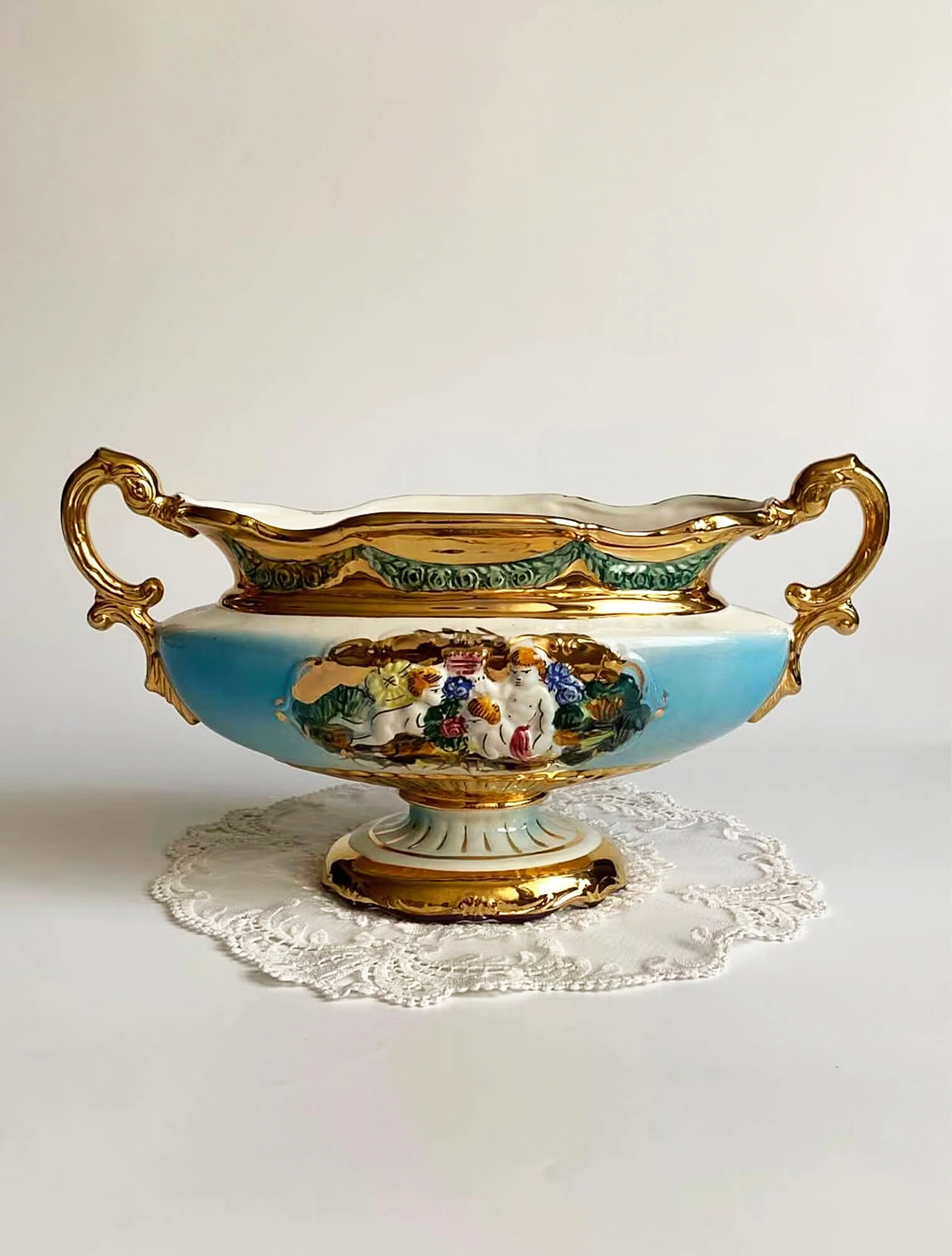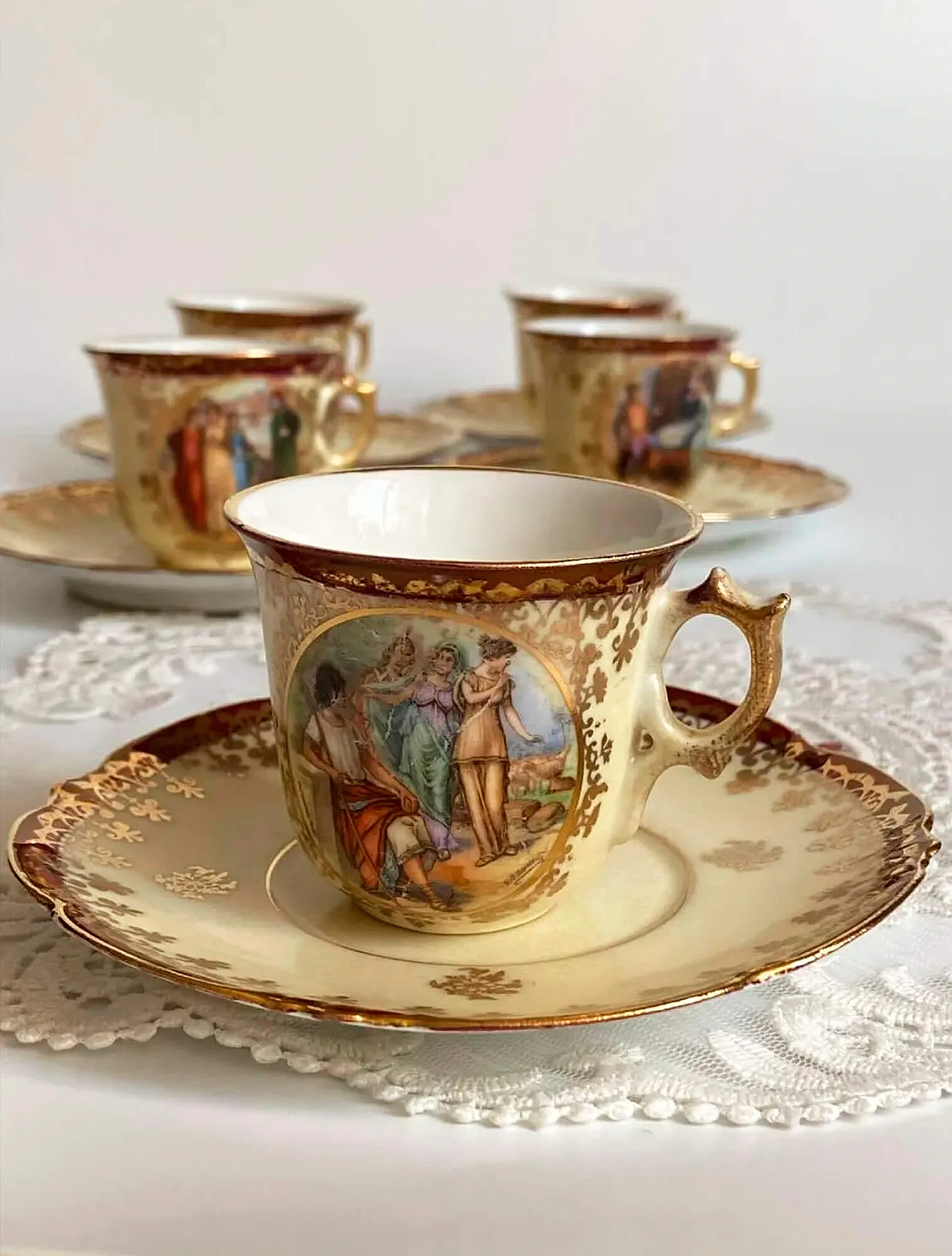 Позолота или платина используются точечно — как тонкая кайма по краю, едва заметный акцент на рельефе. В классическом стиле золото никогда не бывает «кричащим». Его задача — не привлекать внимание само по себе, а оттенять благородство фарфора, как лёгкий блик на мраморе.