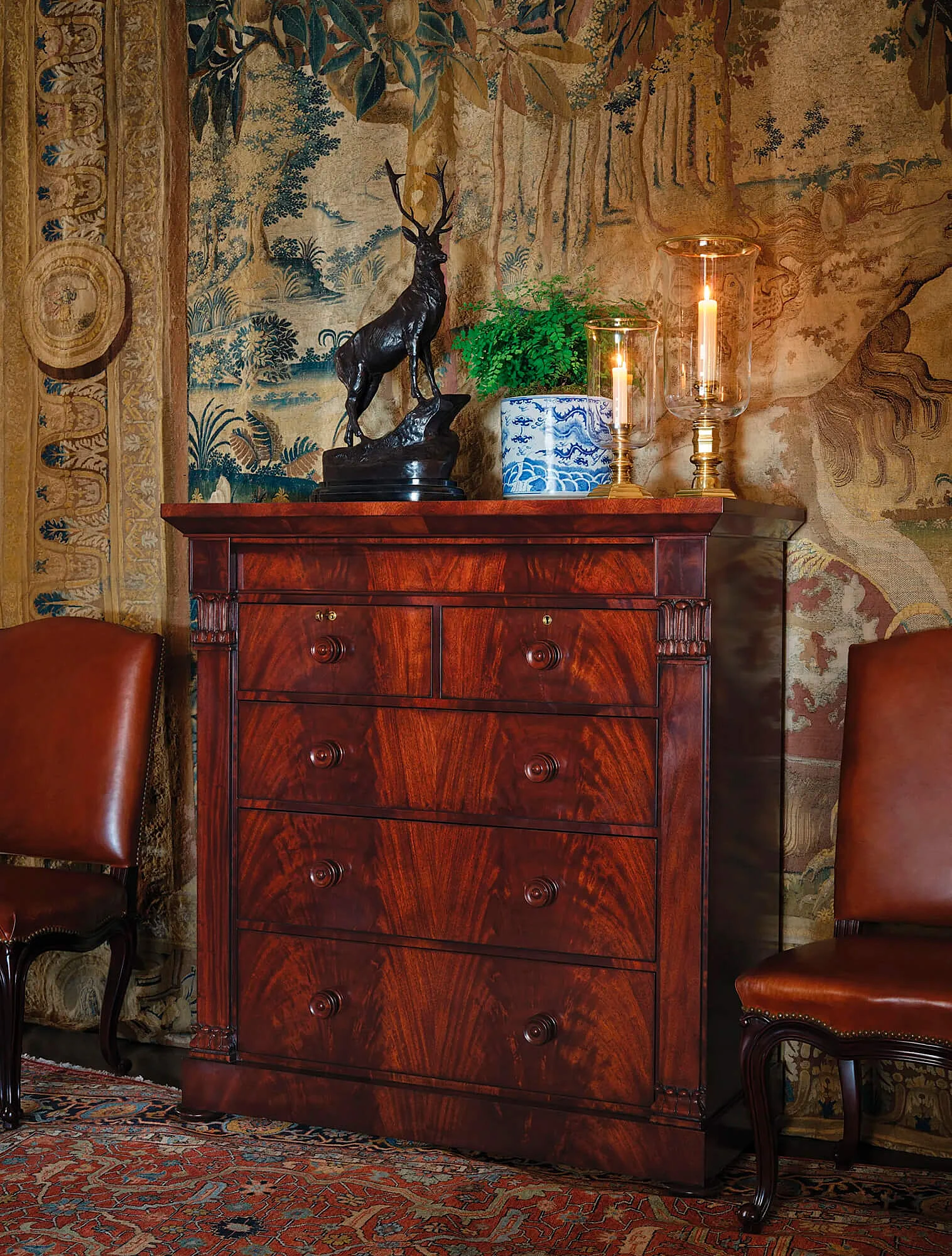В этот же период сложилось представление о том, что интерьер должен быть целостным. Всё пространство — от стен и колонн до мельчайших предметов — подчинялось единым правилам. Если архитектура говорит на языке античных принципов красоты, то и мебель, и декор, и посуда должны соответствовать тем же канонам.