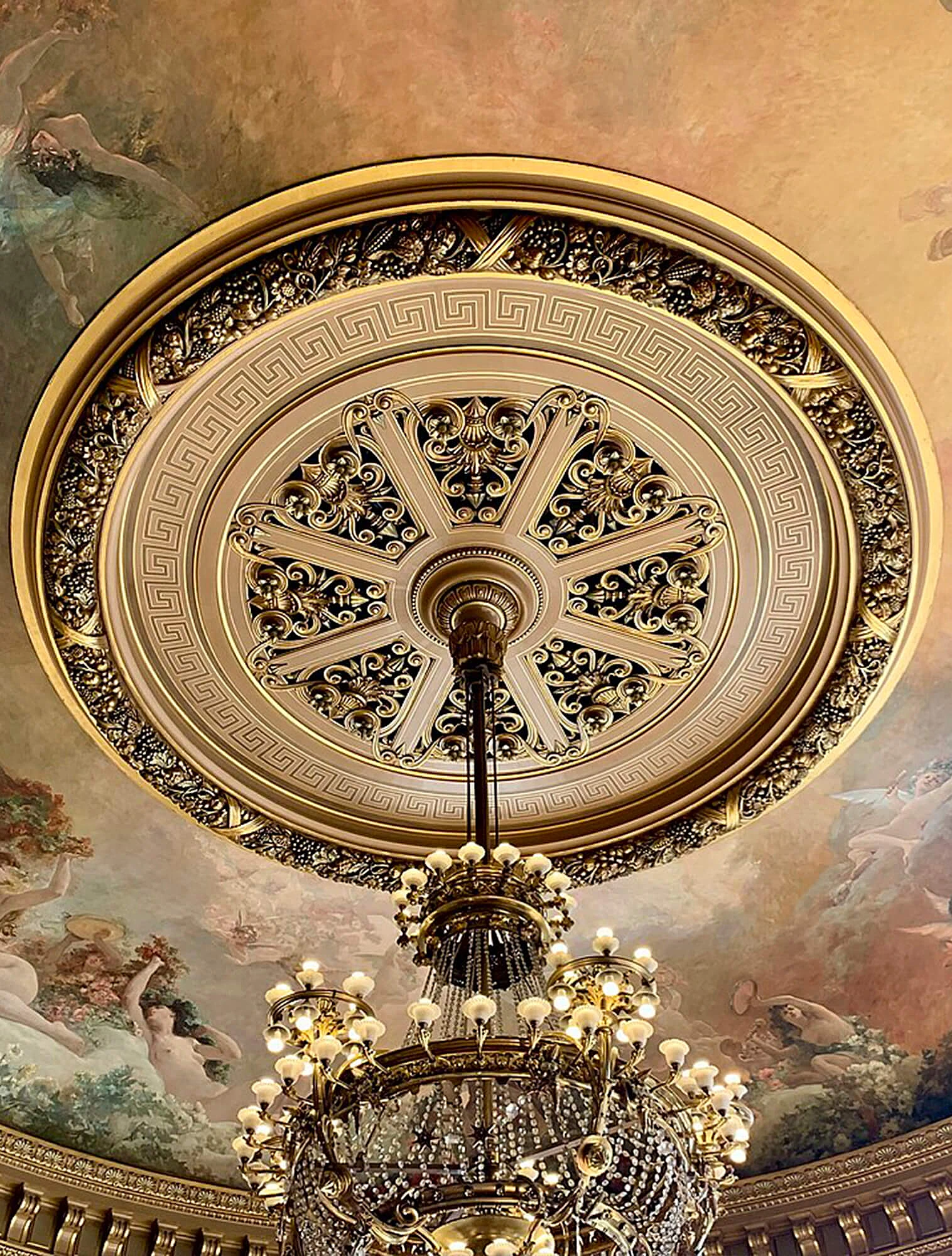 Это самый узнаваемый визуальный маркер. Классический стиль всегда так или иначе цитирует античность: колонны и пилястры, античные орнаменты (меандр, пальметта, лавровый венок), скульптуры и барельефы на мифологические сюжеты. В архитектуре это использование античной ордерной системы, а также декора, повторяющего античные образцы.