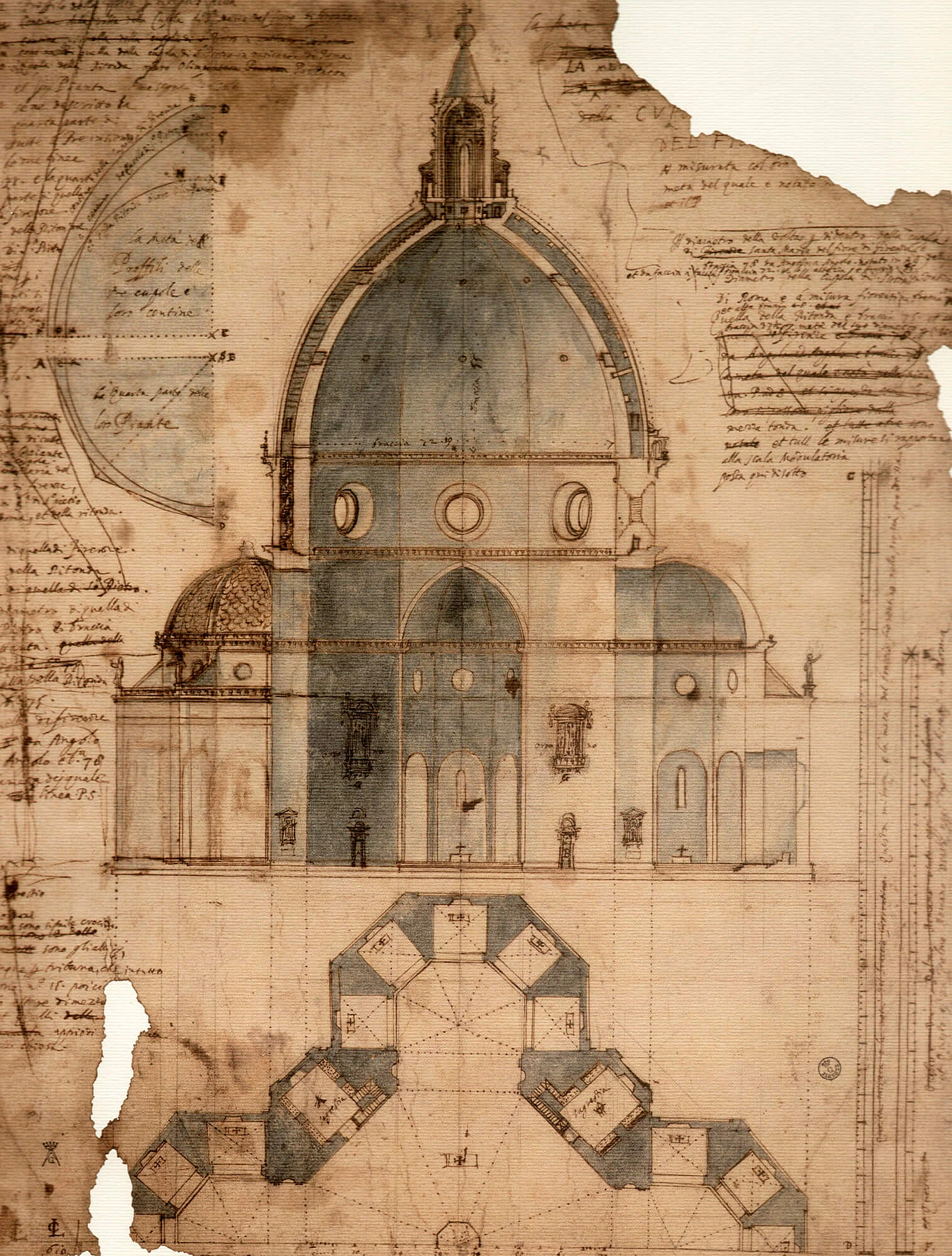 Они начали изучать античные руины, обмерять сохранившиеся постройки, перерисовывать орнаменты. Филиппо Брунеллески, создавший знаменитый купол флорентийского собора Санта-Мария-дель-Фьоре, специально ездил в Рим, чтобы сделать замеры античных сооружений и понять законы их построения.