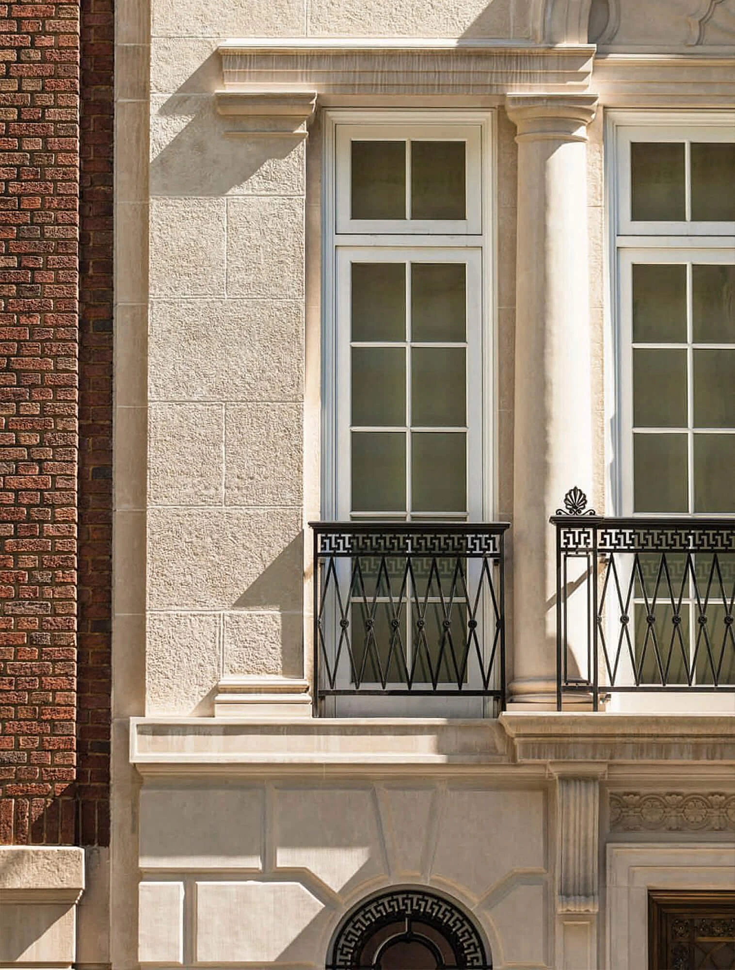 Так, в классической архитектуре лепнина и другие декоративные элементы применяются точечно. Они сосредоточены в строго определённых местах: на капителях (верхних, декоративных частях) колонн, на карнизах, в наличниках окон. Эти места — узлы конструкции: капитель — переход от колонны к потолку, карниз — завершение стены, наличник — обрамление проёма. Поэтому декор тут работает как акцент, оттеняющий конструкцию здания.