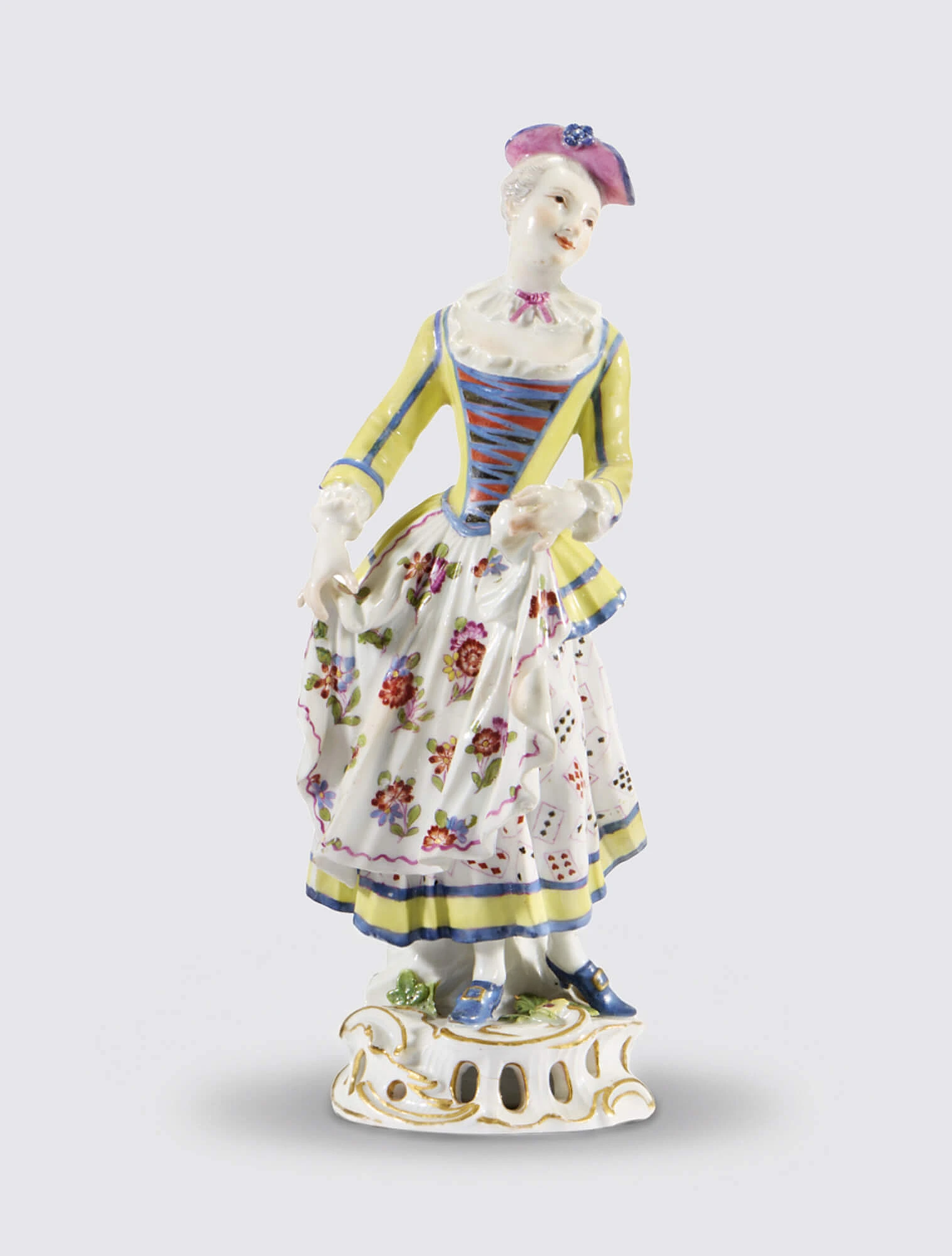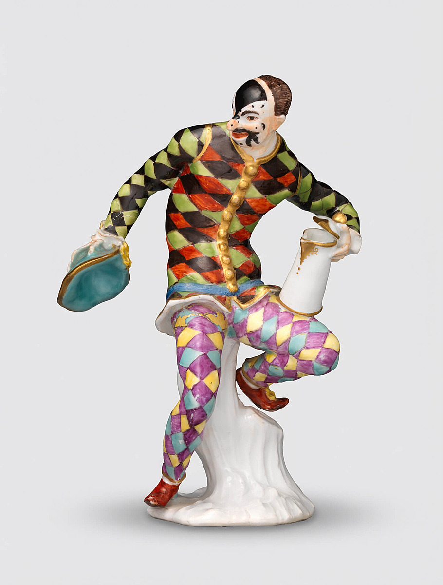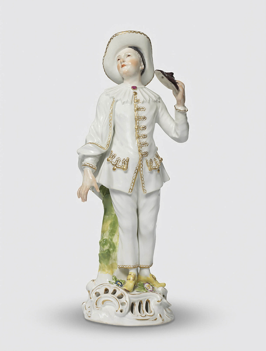 Особую популярность получают статуэтки Meissen с образами актёров итальянского народного театра — Арлекина, Коломбины, Пьеро и Панталоне. Их легко узнать по театральным позам, выразительным жестам и характерным костюмам. Параллельно создаются фигуры придворных дам и кавалеров в пышных нарядах эпохи рококо — так называемые «кринолинные» фигуры, которые со временем стали одним из самых узнаваемых образов Meissen.