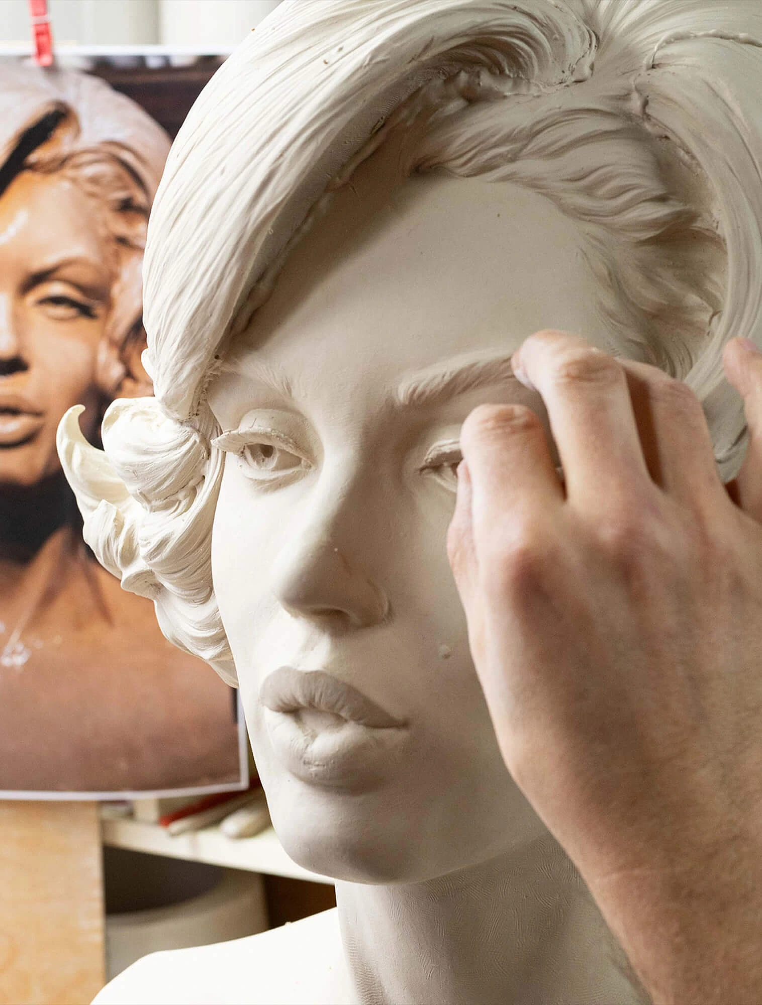 До этого интерьерные скульптуры выполняли в основном из бронзы, дерева или мрамора — материалов тяжёлых и сложных в обработке.