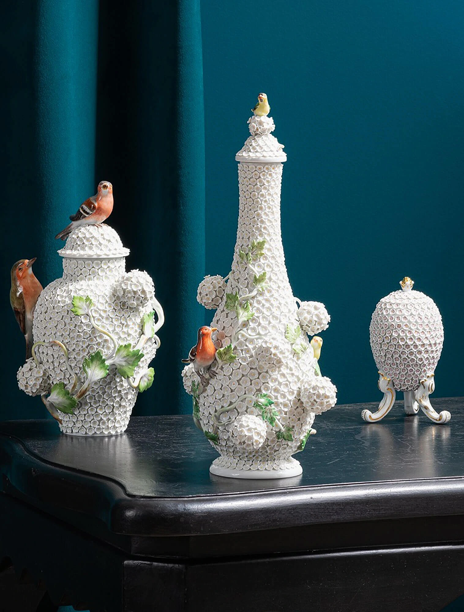 Во эпоху неоклассицизма декоративные вазы Meissen часто были парными. Их размещали симметрично — по обе стороны камина, зеркала или консоли. Такая расстановка подчёркивала порядок и уравновешенность интерьера, характерные для эстетики того времени.