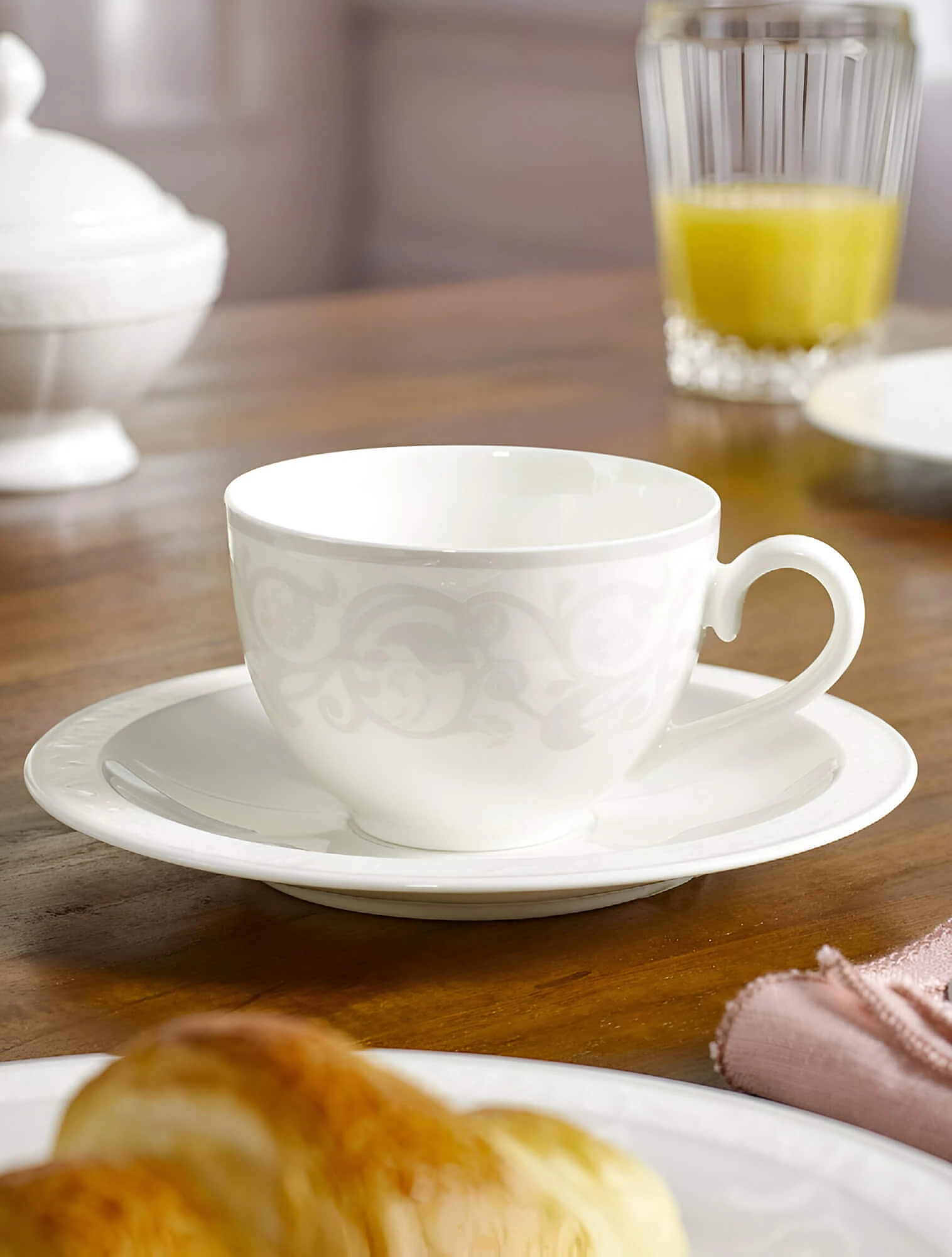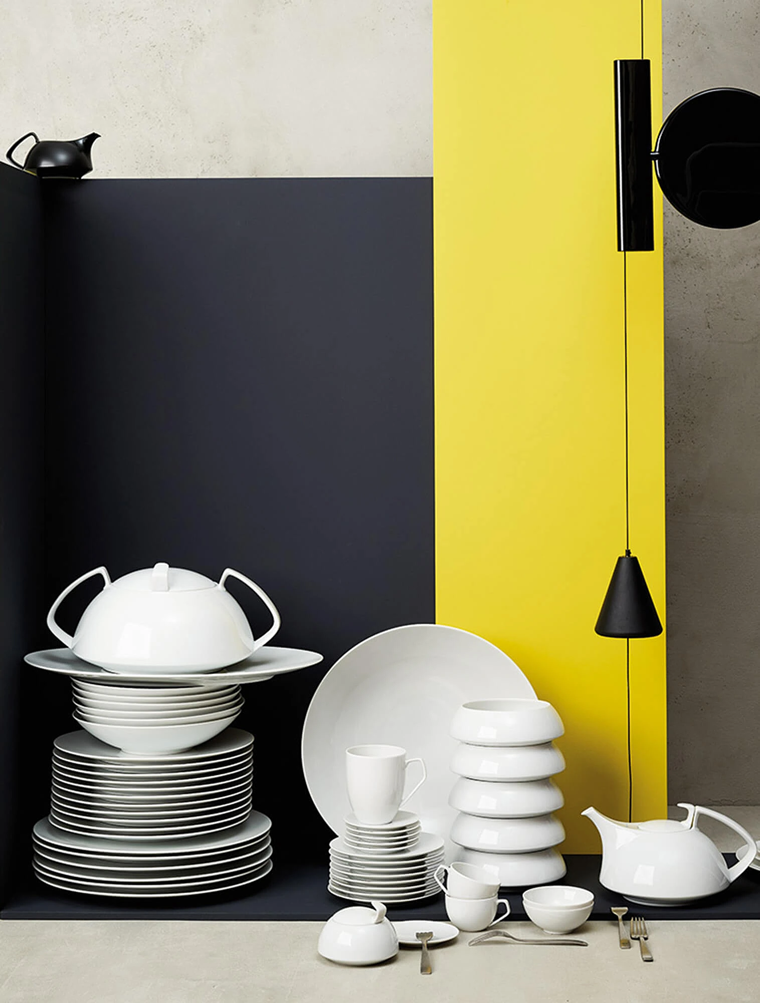 Одна из самых известных коллекций бренда — TAC, созданная в 1969 году Вальтером Гропиусом, основателем Баухауса. Она перевернула представление о сервизе: вместо узоров и позолоты — строгая геометрия и чистый белый фарфор. TAC стала символом дизайнерского фарфора 20 века и выпускается до сих пор.