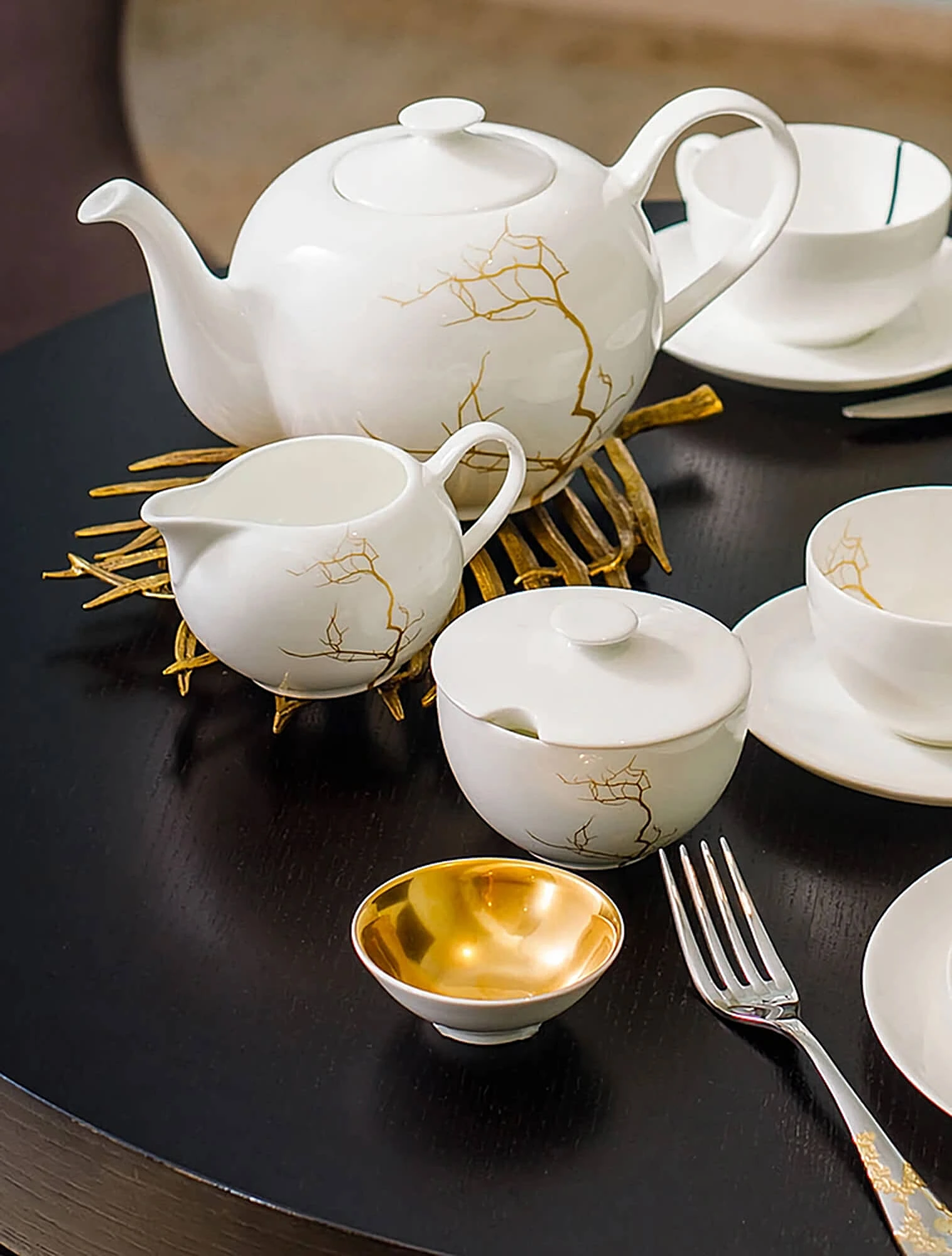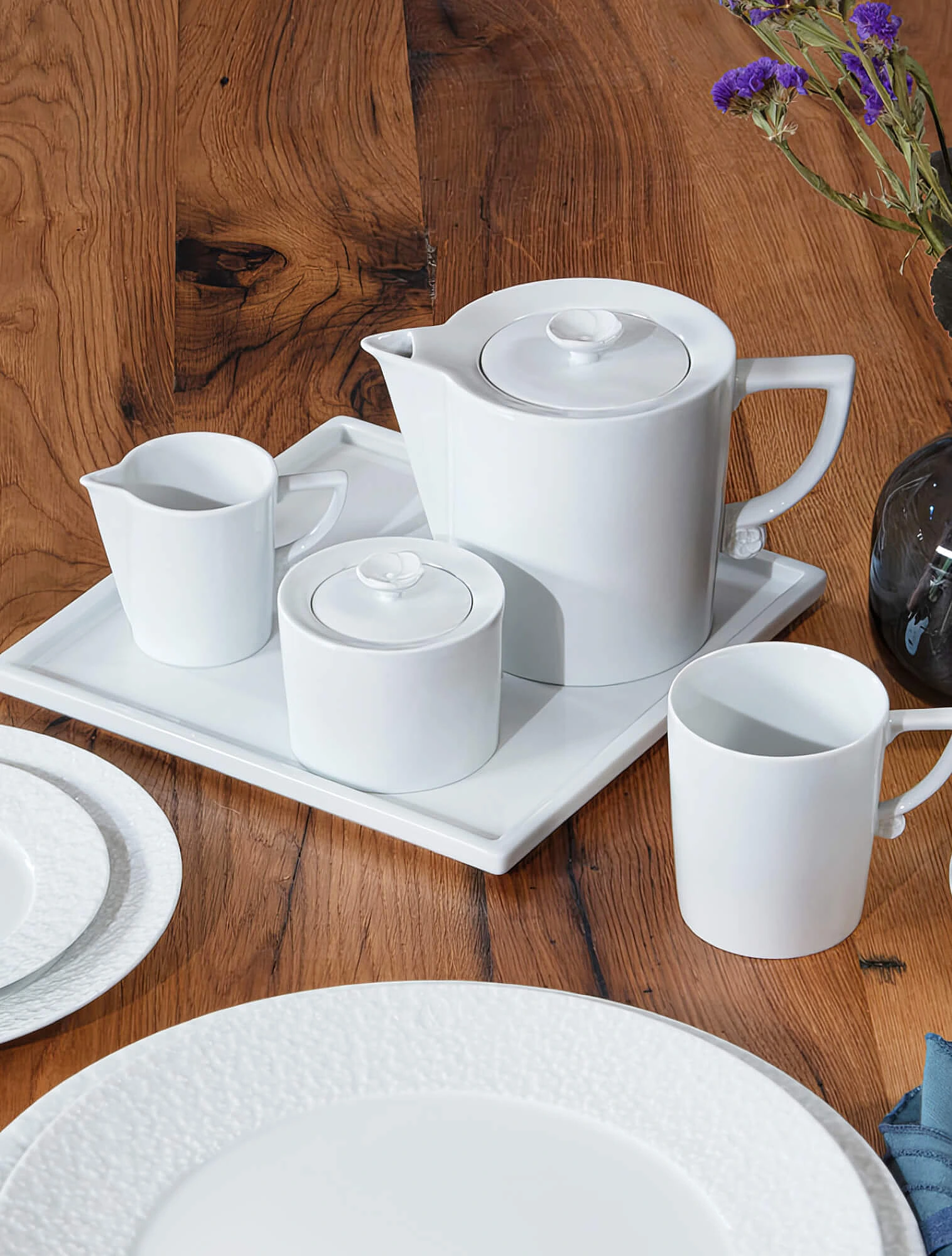 Дизайн тоже стал другим — вместо богатой росписи и позолоты в тренде матовые бархатистые глазури, натуральные оттенки, сочетание фарфора с деревом, стеклом или металлом.