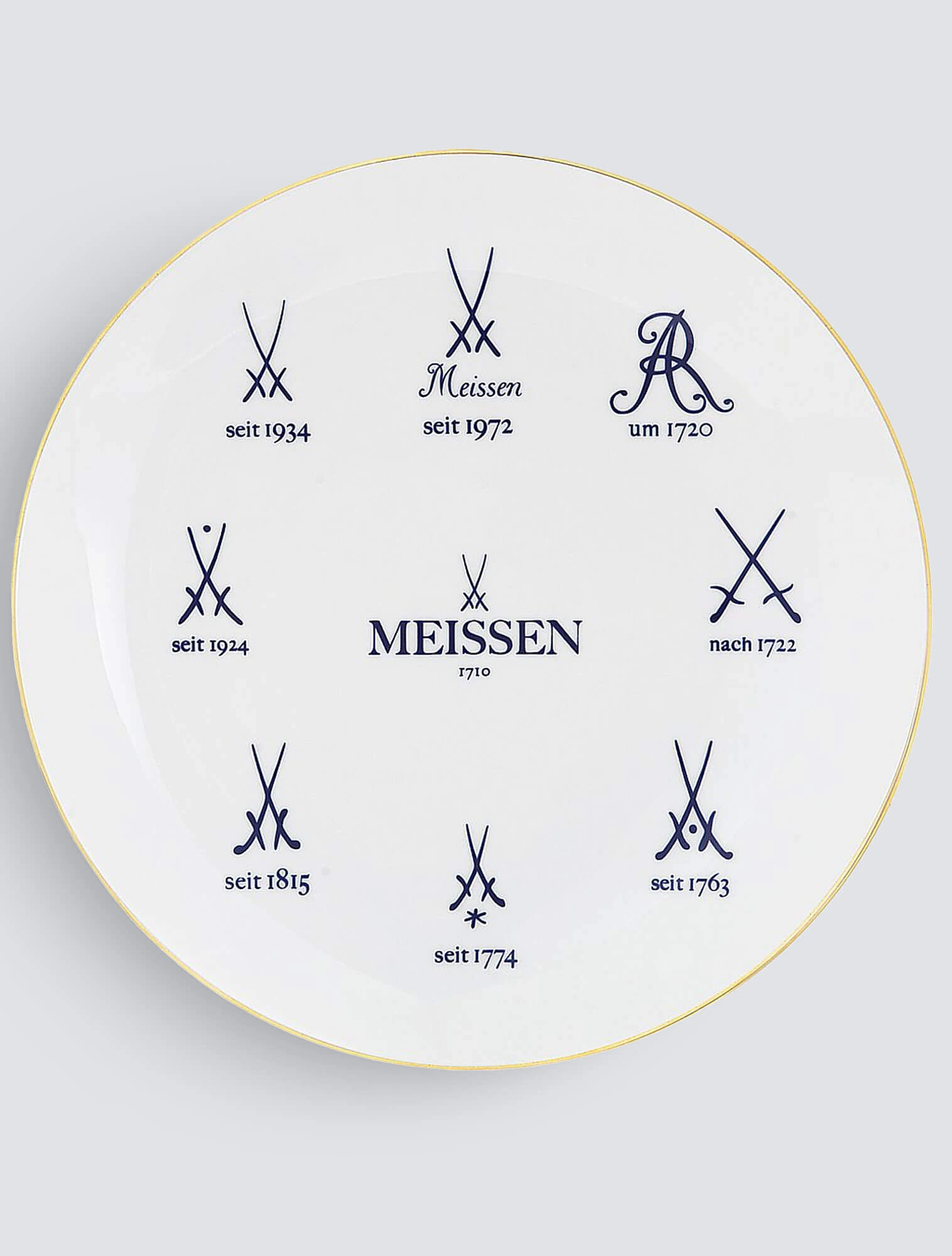 Отличительный знак изделий Мейсена — перекрещенные мечи — символ Саксонии. Если в других странах клейма ставились разные и даже вовсе могли не ставиться, то Германия впервые ввела обязательное и единое клеймо для фарфора. Оно позволяло сразу определить подлинность предмета и защищало от подделок.