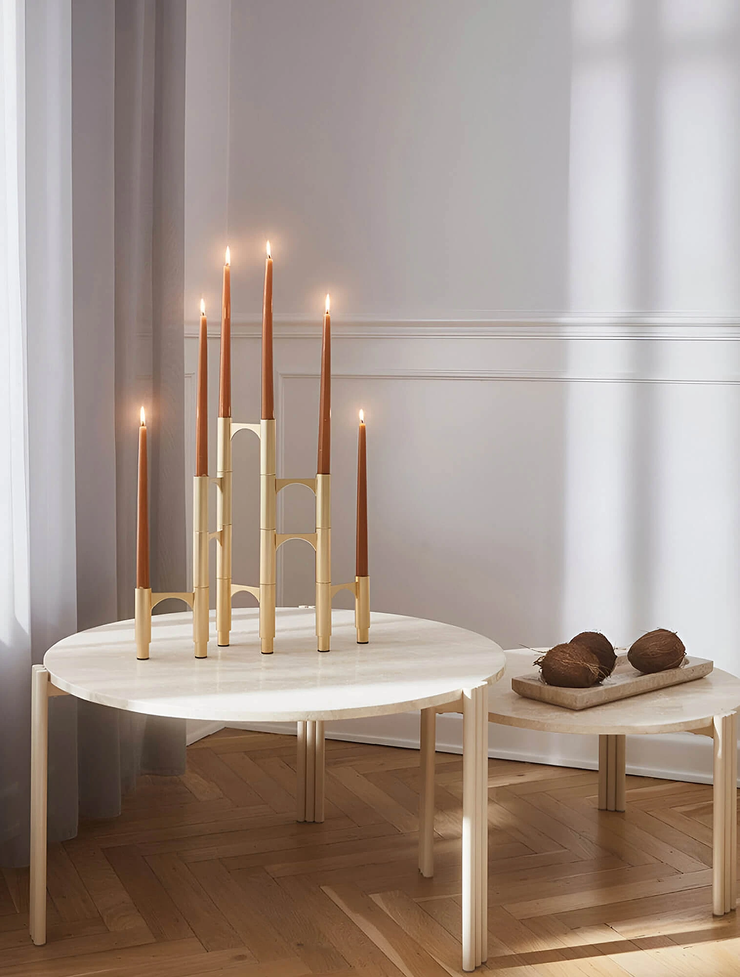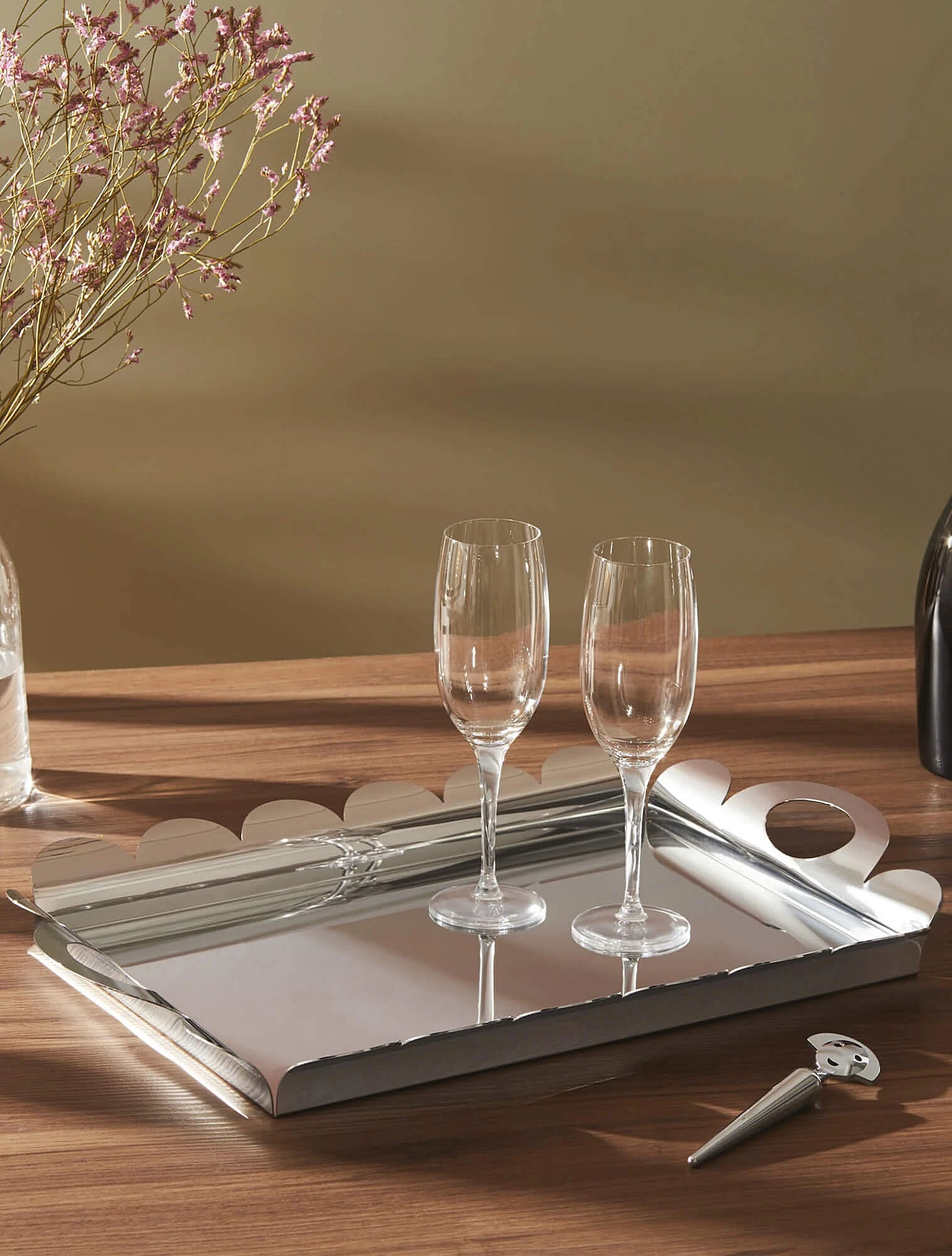 В центре внимания в новом сезоне будут предметы из отполированной и сияющей стали, например, подносы‑зеркала как в Alessi, хромированные вазы или кувшины как в Georg Jensen, а также аксессуары с элементами латуни или золота как в AYTM. В текстиле дизайнеры предлагают делать акцент на эффектных фактурах вроде бархата или жаккарда.