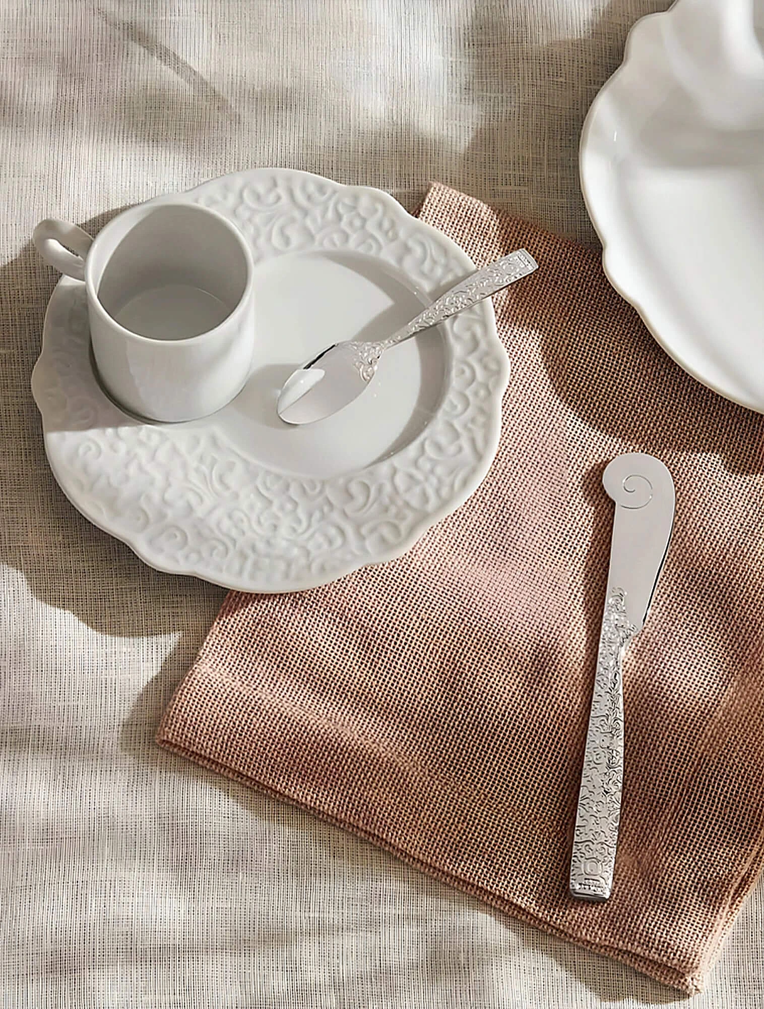 Если посуда, то обязательно тактильная: матовая, с рельефом, напоминающим ткань или дерево, имитирующая ручную работу или, действительно, сделанная вручную. Если текстиль, то из натуральных материалов — неотбеленный лён, хлопок. В моду возвращается декоративность, растёт интерес к кружеву, рюшам и вышивке.
