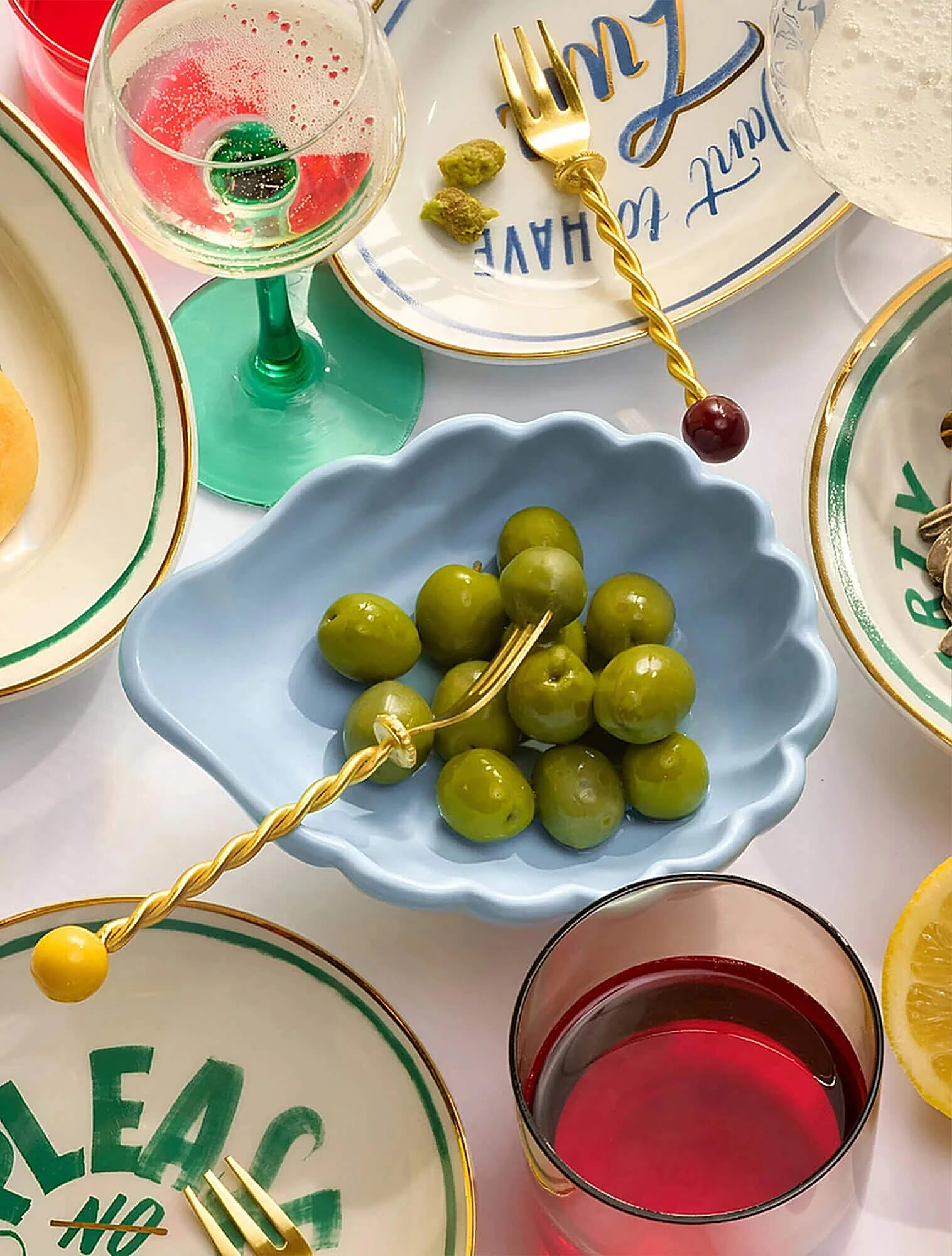 Трендовая дофаминовая посуда может выглядеть слишком активной, если не соблюдать меру. Поэтому главный принцип работы с ней — баланс: яркие предметы лучше сочетать с лаконичной однотонной базой. Чаще всего такую посуду используют как акцент, который оживляет сервировку и делает её выразительнее. Это могут быть блюда, салатники, подносы, менажницы, вазы или цветные бокалы, популярность которых в последнее время заметно выросла.