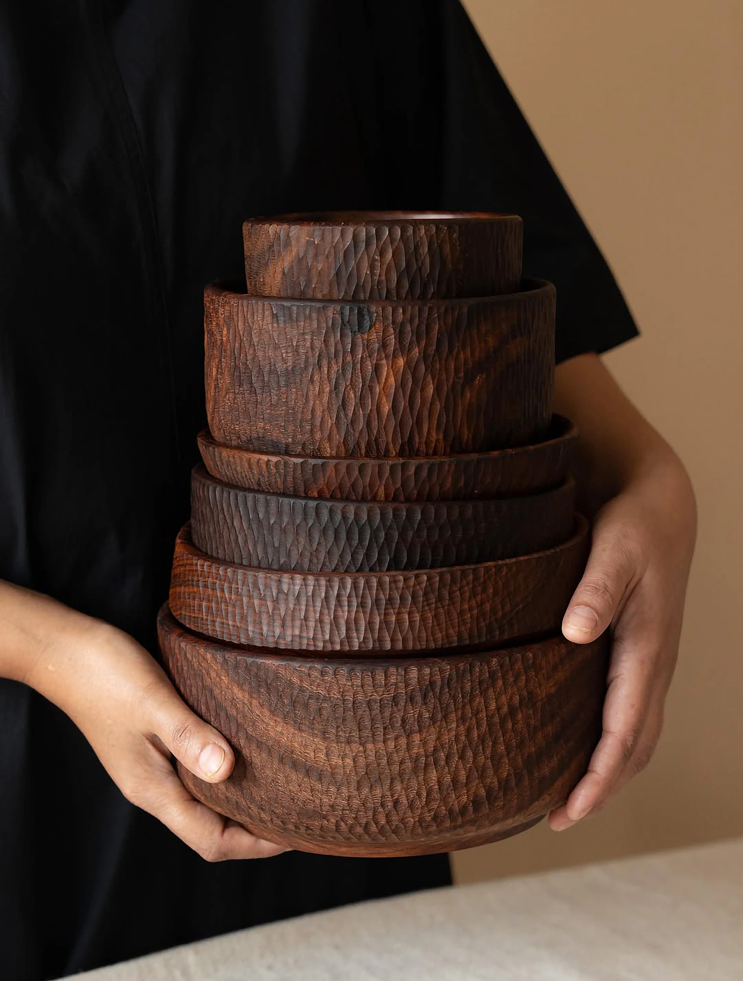 Многие бренды выбирают для себя эту стилистику как основную, например, аутентичный Turn Black Home из Индии. В коллекциях марки представлены блюда, чаши, подносы и вазы ручной работы из красивого и прочного палиссандра. Мастера фабрики вручную наносят резьбу на изделия и тщательно шлифуют их, демонстрируя рельеф, пластику и характер древесины.