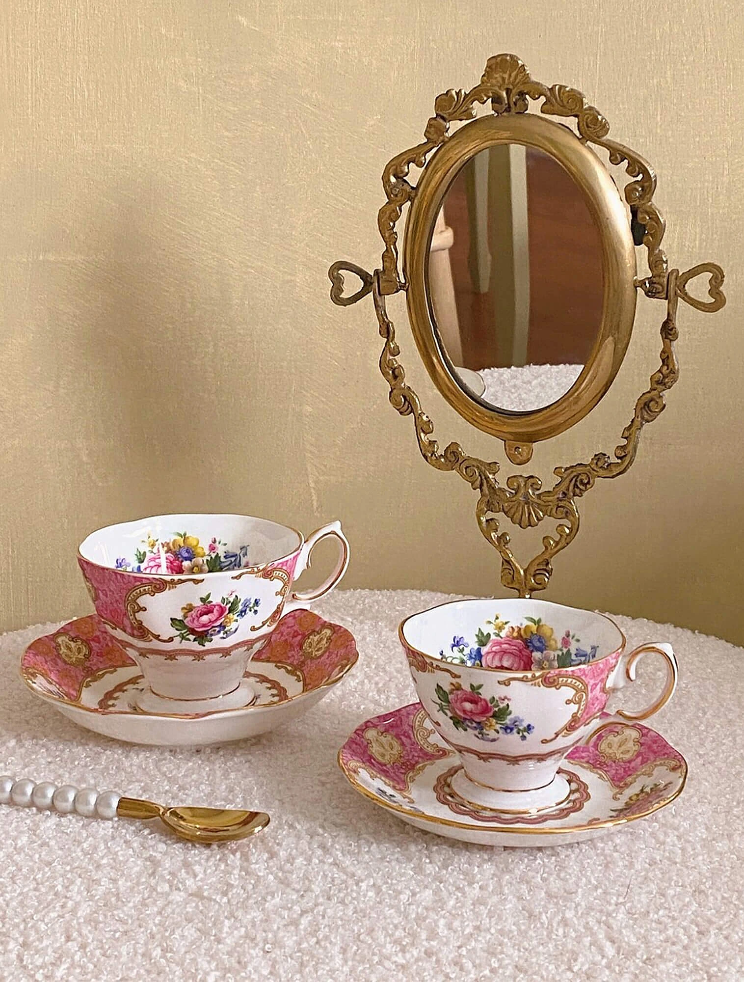 В Lady Carlyle появляется тот силуэт, который позже станет фирменным для бренда. Именно Гарольд Холдкрофт оформил его окончательно: волнистые края, плавные изгибы, «цветочная» форма чашки и изящные изогнутые ручки.