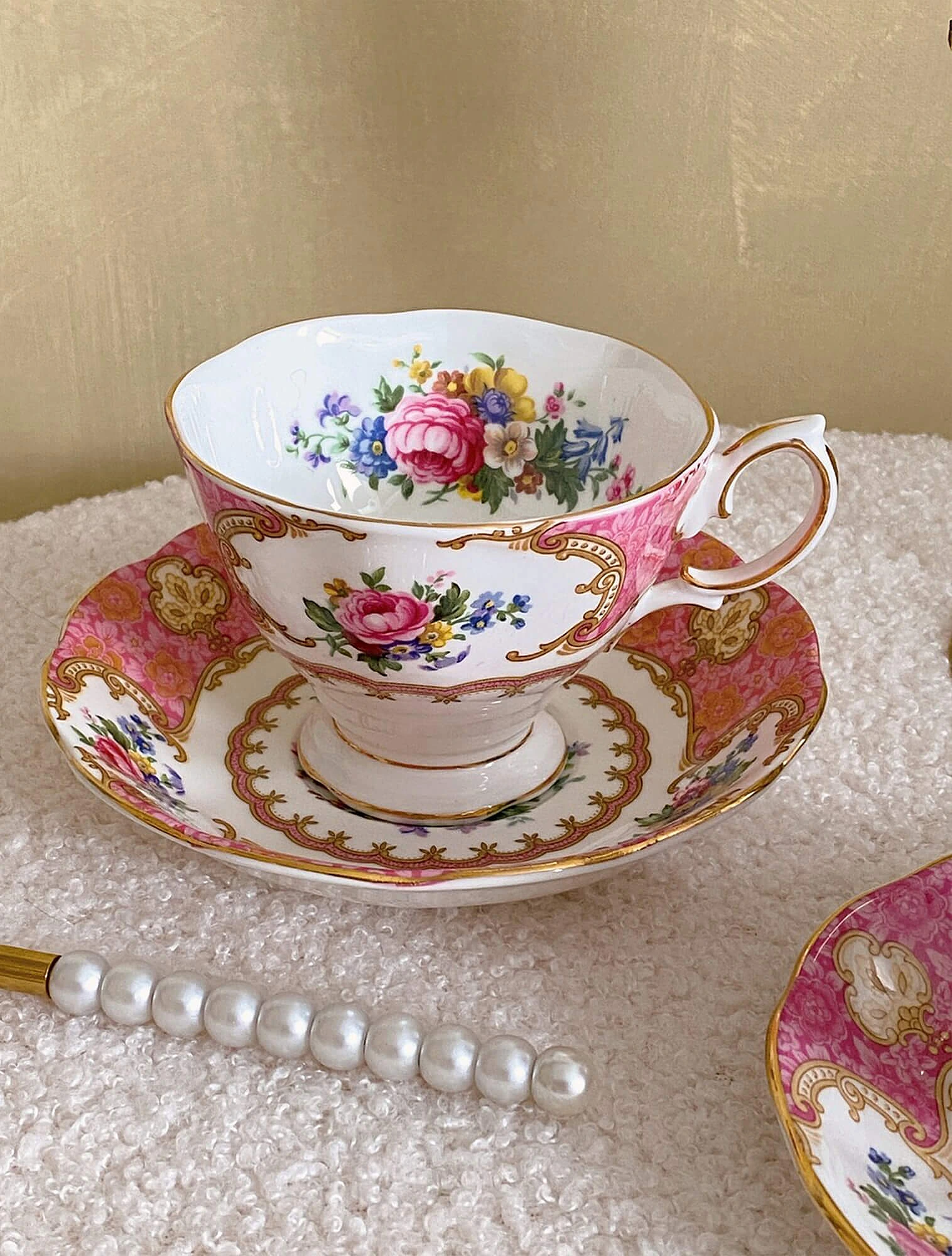 В этот период бренд начал экспериментировать с дизайном. Если ранние цветочные узоры были тонкими и пастельными, то послевоенный дизайн стал более «праздничным». Теперь посуду Royal Albert украшали насыщенные оттенки розового и красного, пышные букеты и более заметная позолота.