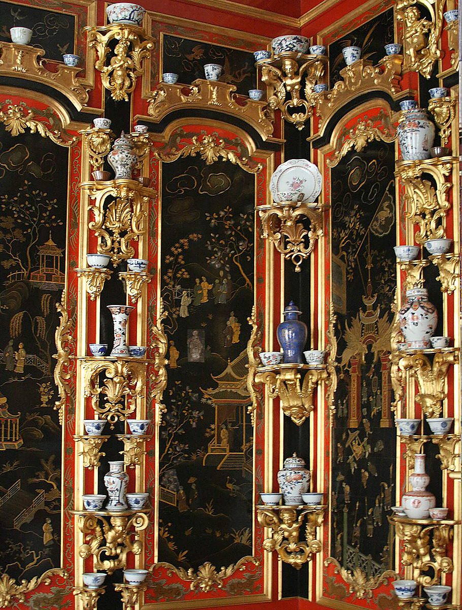 После одной из таких поездок Пётр захотел создать похожий «восточный уголок» у себя. В Петергофе во дворце Монплезир появился Лаковый кабинет, который был создан для демонстрации большой коллекции китайского фарфора.