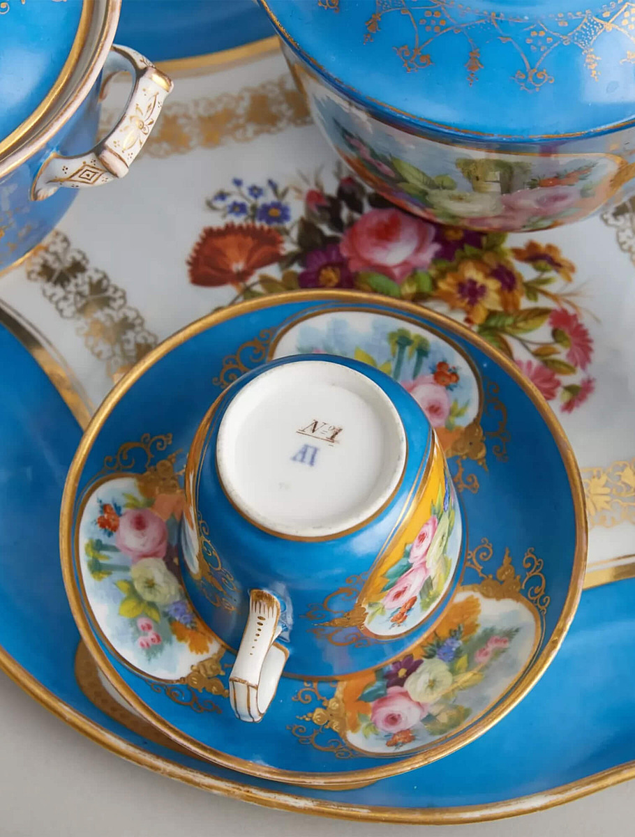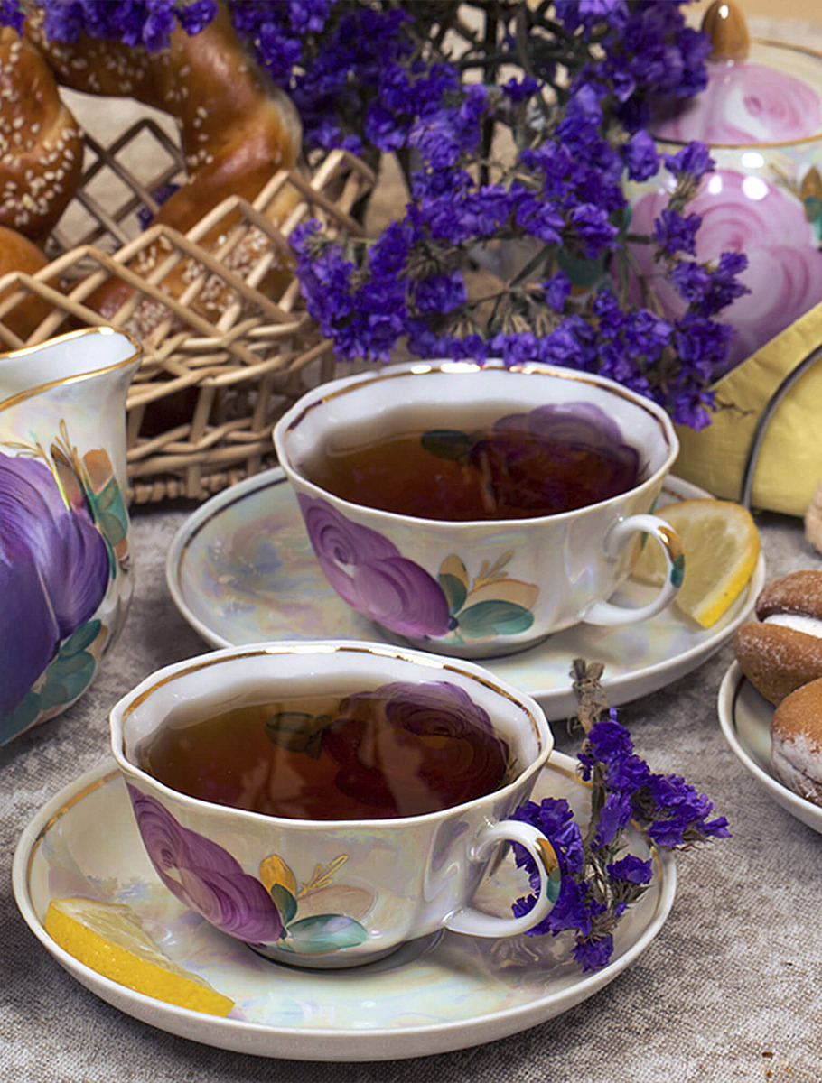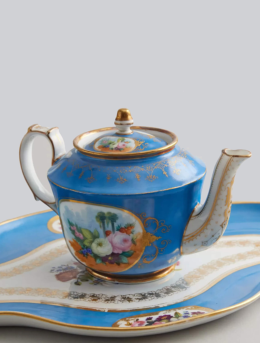 Чайные сервизы украшались букетами цветов и гирляндами. Их создавали в различных техниках: подглазурная и надглазурная роспись, печать, цветные люстры (металлизированные покрытия), золочение по рельефному узору, скульптурные элементы на крышках, ручках, подставках.